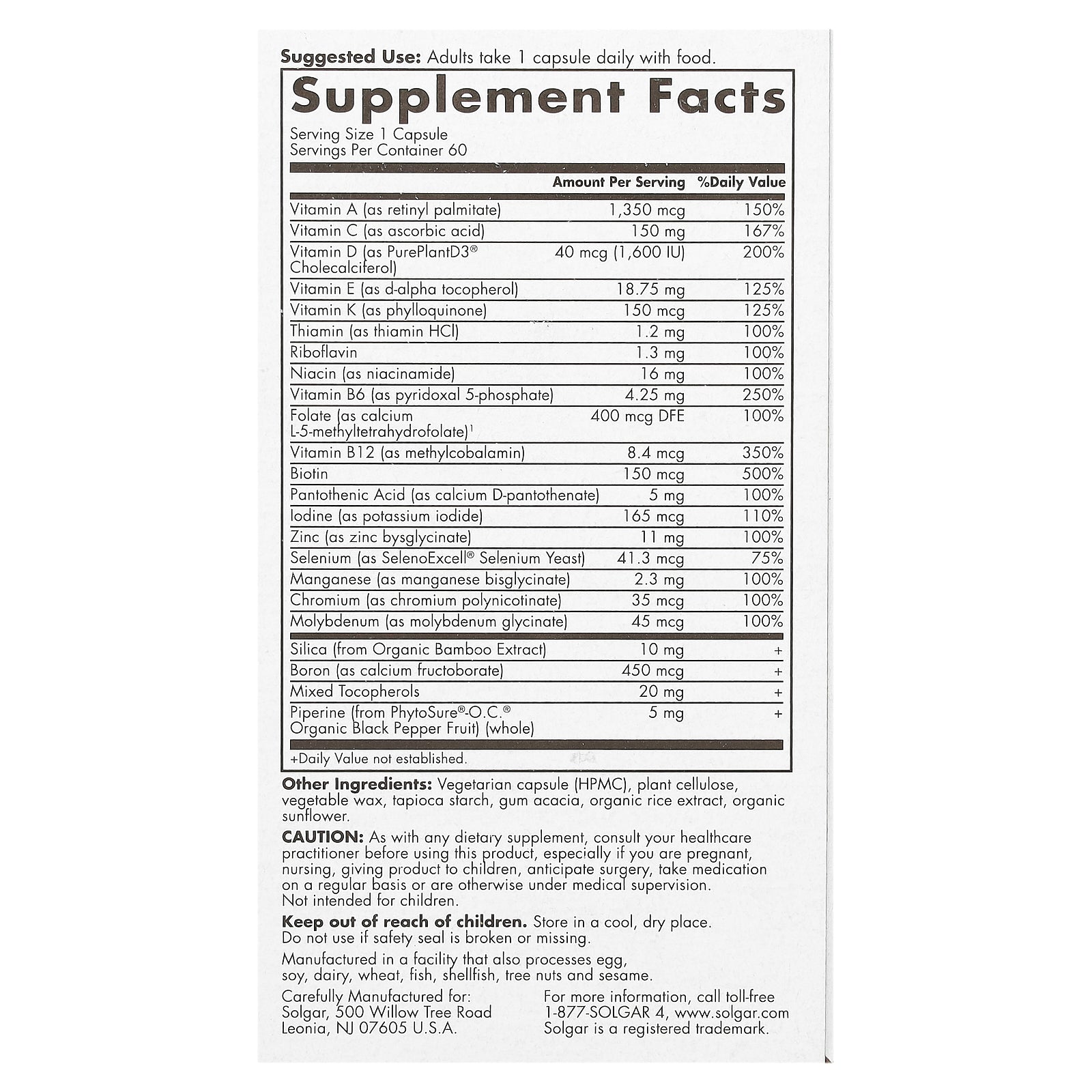 | Selenium (as SelenoExcell® Selenium Yeast) | 41.3 mcg | 75% |