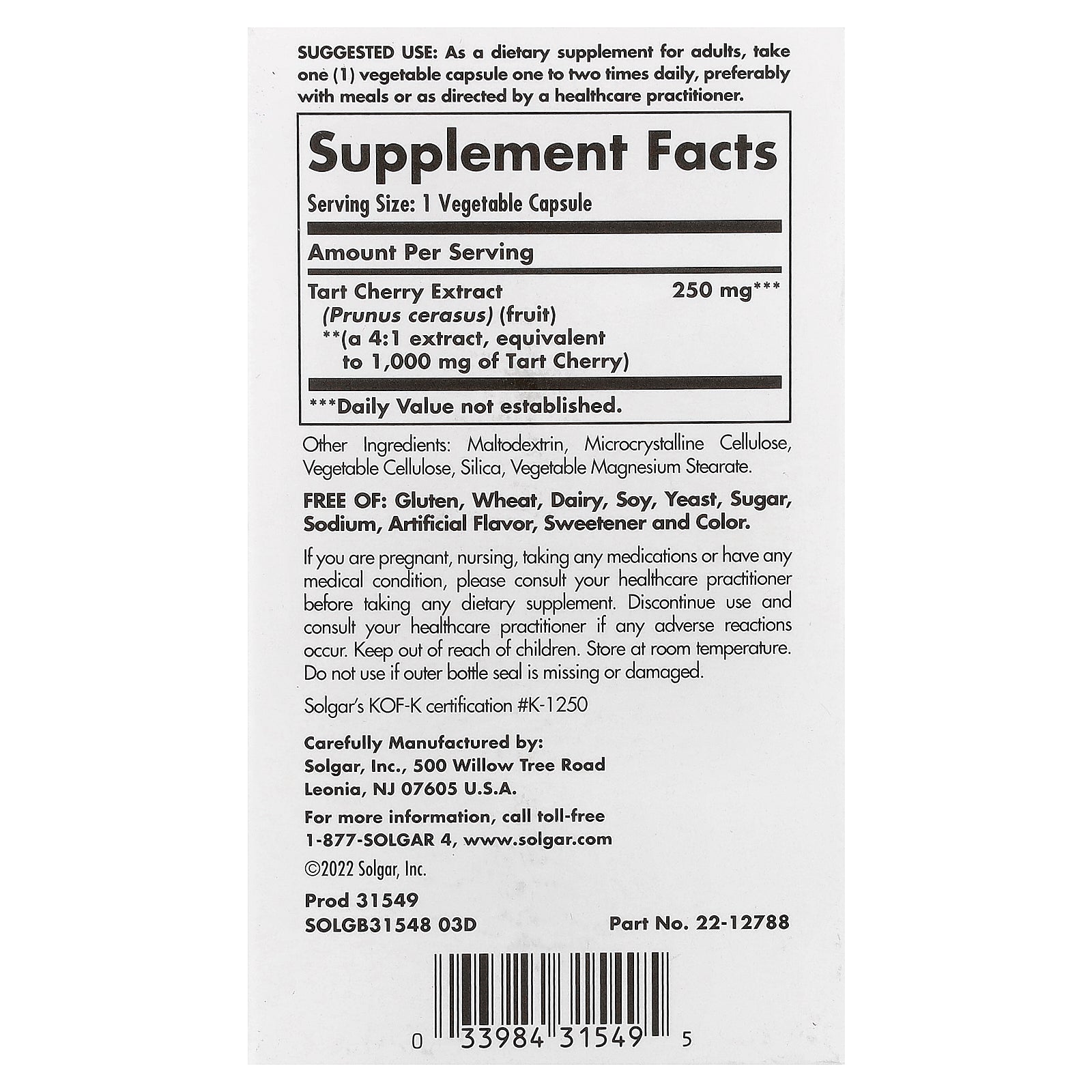 Solgar® Tart Cherry Extract provides the health- supporting natural goodness of cherries without all the calories and sugar.