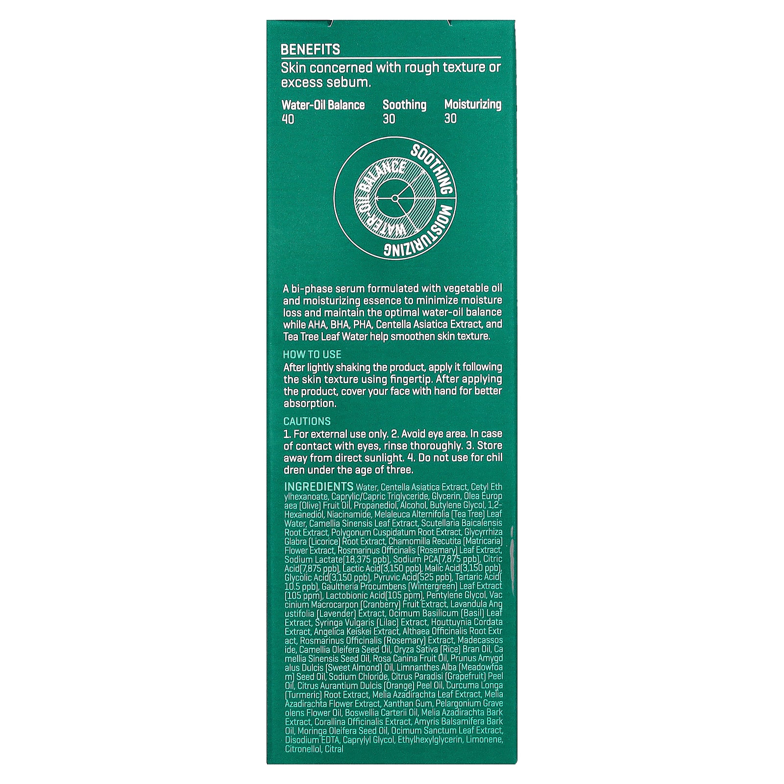 A bi-phase serum formulated with vegetable oil and moisturizing essence to minimize moisture loss and maintain the optimal water-oil balance while AHA, BHA, PHA, Centella Asiatica Extract, and Tea Tree Leaf Water help smoothen skin texture.