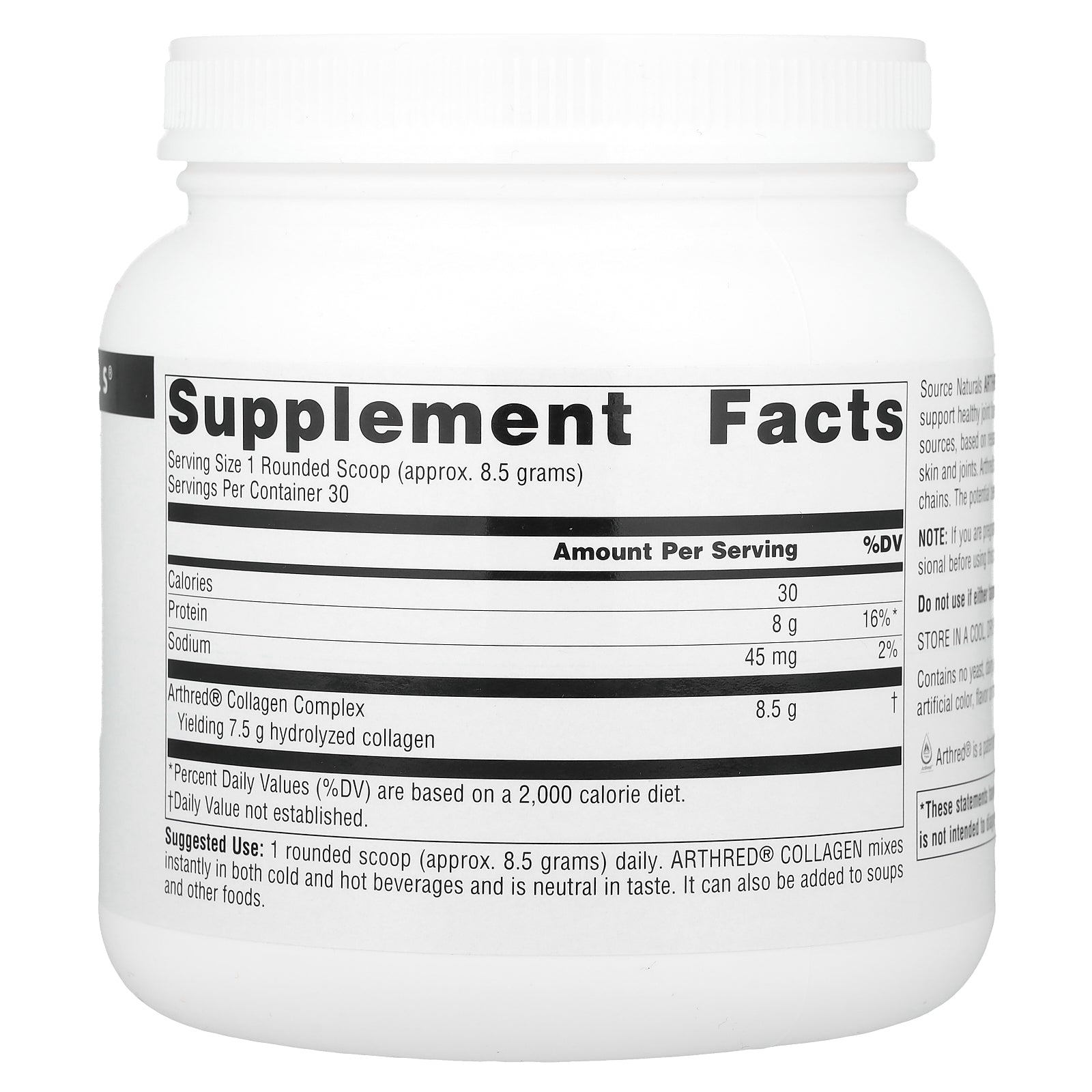 Source Naturals Arthred® Collagen is a hydrolyzed collagen product designed to nutritionally support healthy joint function. Arthred was originally developed and patented in Germany from bovine sources, based on research showing collagen's benefits for the connective tissue needed for healthy skin and joints. Arthred's patented formula consists of 19 amino acids bonded together in polypeptide chains. The potential benefit of Arthred Collagen may be felt in 3 months.