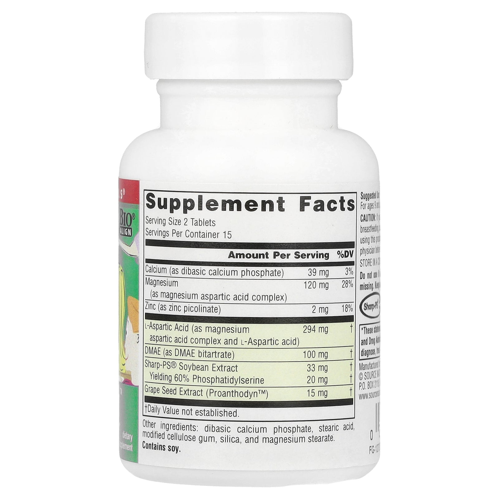 Studies have shown that very active children may have special dietary needs. Source Naturals Attentive Child™ is designed to support the multiple systems that affect your child's brain metabolism-and kids love the sweet and tart taste! DMAE, a substance normally found in the brain, may be used by the body to make choline, which in turn may be used to make acetylcholine. Magnesium is necessary for numerous metabolic processes and also plays a role in neuromuscular transmission and activity. L-Aspartate, an amino acid, acts as a neurotransmitter. Our grape seed extract provides procyanidins, which have powerful antioxidant activity, and phosphatidylserine is a vital component of cell membranes, including those in the brain.