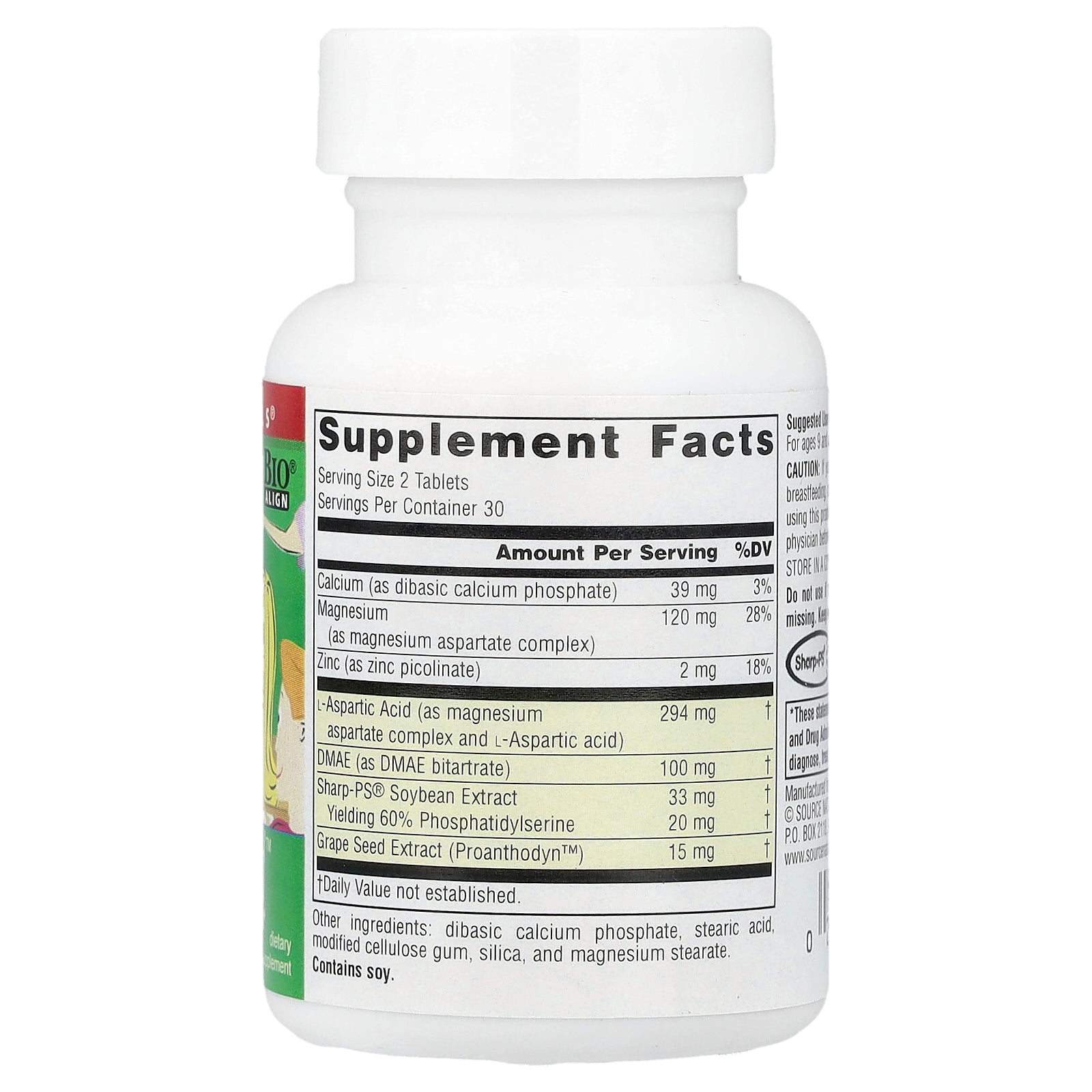 Studies have shown that very active children may have special dietary needs. Source Naturals Attentive Child™ is designed to support the multiple systems that affect your child's brain metabolism-and kids love the sweet and tart taste! DMAE, a substance normally found in the brain, may be used by the body to make choline, which in turn may be used to make acetylcholine. Magnesium is necessary for numerous metabolic processes and also plays a role in neuromuscular transmission and activity. L-Aspartate, an amino acid, acts as a neurotransmitter. Our grape seed extract provides procyanidins, which have powerful antioxidant activity, and phosphatidylserine is a vital component of cell membranes, including those in the brain.