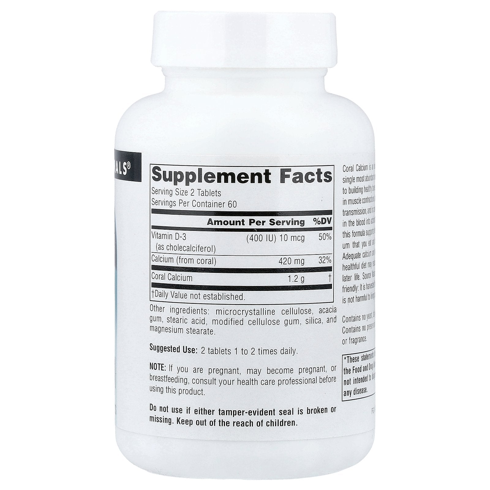 Coral Calcium is an excellent source of calcium, the single most abundant mineral in our bodies. In addition to building healthy bones, calcium plays essential roles in muscle contractions, heart beat, blood clotting, nerve transmission, and in converting signals from hormones in the blood into actions within cells. The vitamin D in this formula supports intestinal absorption of the calcium that you eat and its optimal use in the body. Adequate calcium and vitamin D throughout life in a healthful diet may reduce the risk of osteoporosis in later life. Source Naturals CORAL CALCIUM is eco-friendly: It is harvested from fossilized (dead) coral and is not harmful to living coral.