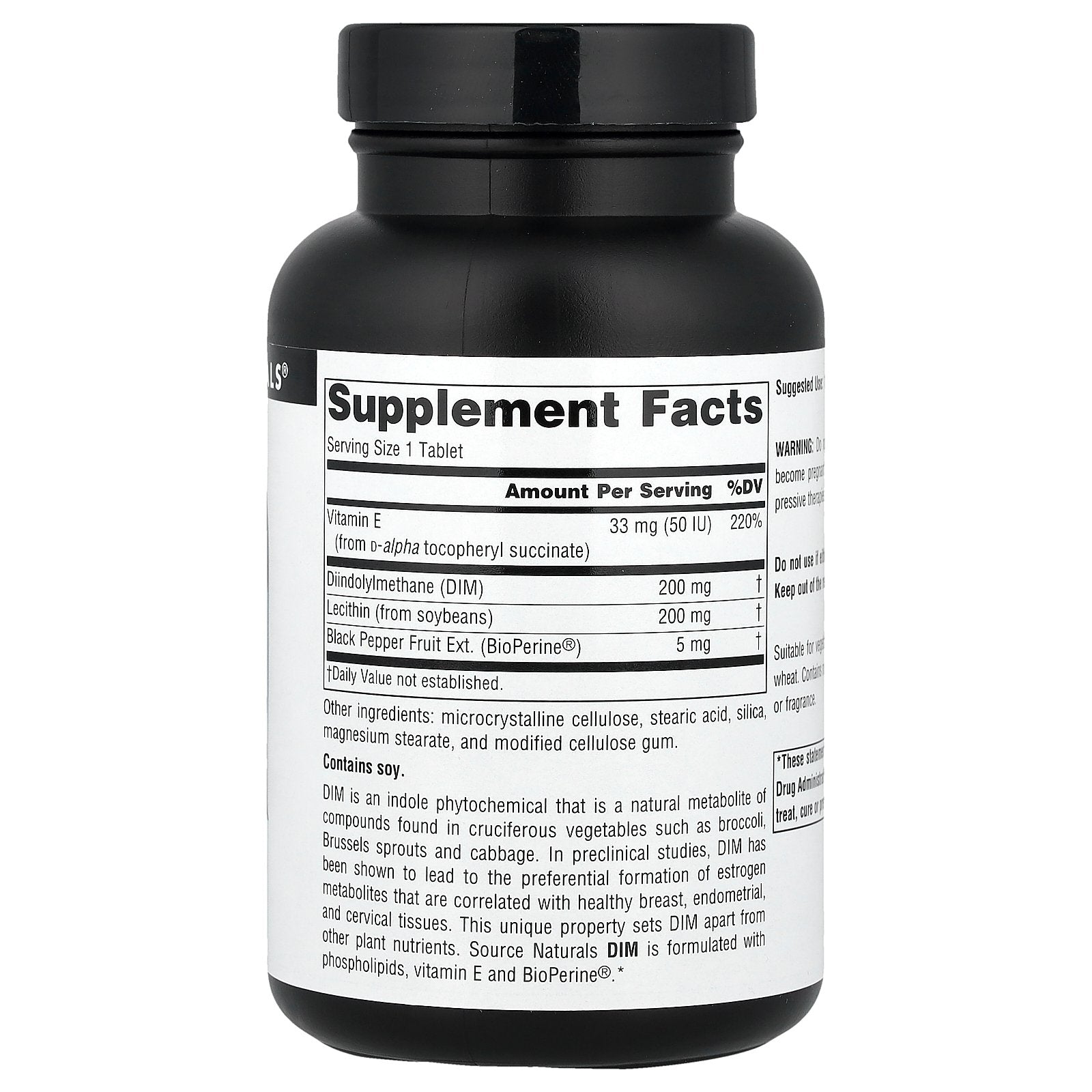 DIM is an indole phytochemical that is a natural metabolite of compounds found in cruciferous vegetables such as broccoli, Brussels sprouts and cabbage. In preclinical studies, DIM has been shown to lead to the preferential formation of estrogen metabolites that are correlated with healthy breast, endometrial, and cervical tissues. This unique property sets DIM apart from other plant nutrients. Source Naturals DIM is formulated with phospholipids, vitamin E and BioPerine®.