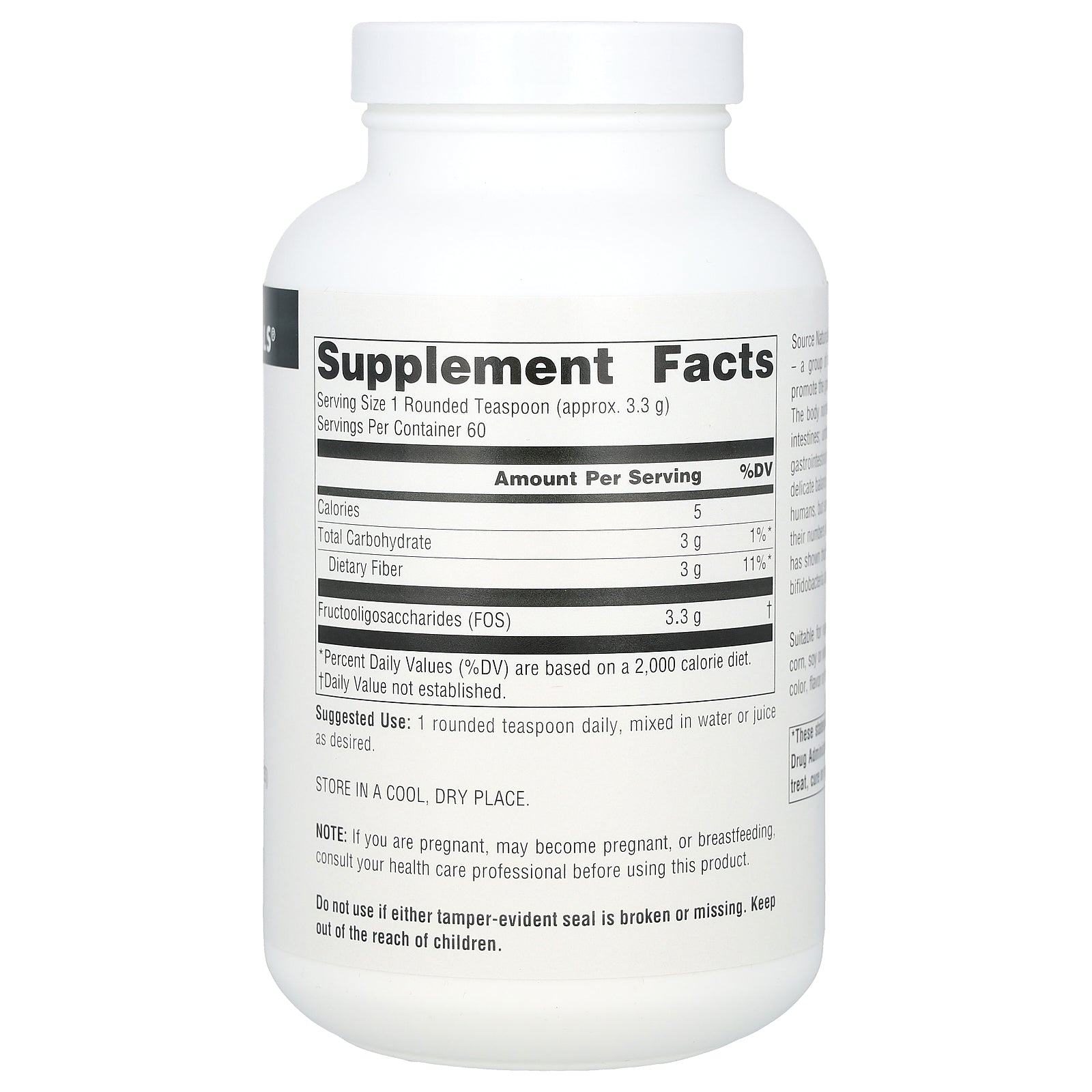 Source Naturals FOS is a complex of fructooligosaccharides (FOS) - a group of naturally occurring carbohydrates that can help promote the growth of beneficial flora in the gastrointestinal tract. The body normally maintains a balance of "friendly" flora in the intestines; unfortunately factors such as improper diet, stress, gastrointestinal problems, and use of antibiotics may disrupt this delicate balance. FOS are long chain sugars that are indigestible by humans, but serve as "food" for friendly flora helping to increase their numbers in the body. Scientific research conducted in Japan has shown that FOS are selectively used by friendly flora such as bifidobacteria and lactobacilli.