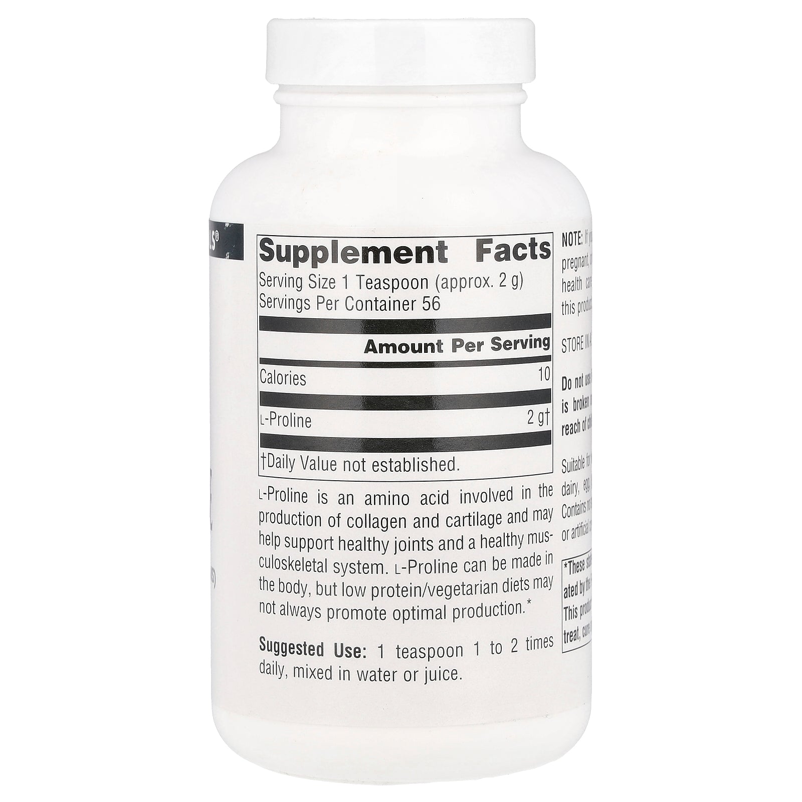 L-Proline is an amino acid involved in the production of collagen and cartilage and may help support healthy joints and a healthy musculoskeletal system. L-Proline can be made in the body, but low protein/vegetarian diets may not always promote optimal production.