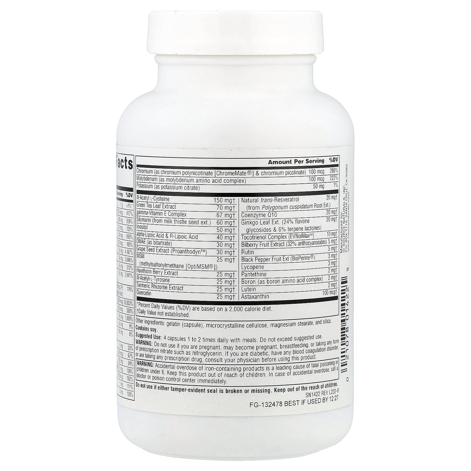 | Selenium (as L-selenomethionine & sodium selenite) | 100 mcg | 182% |