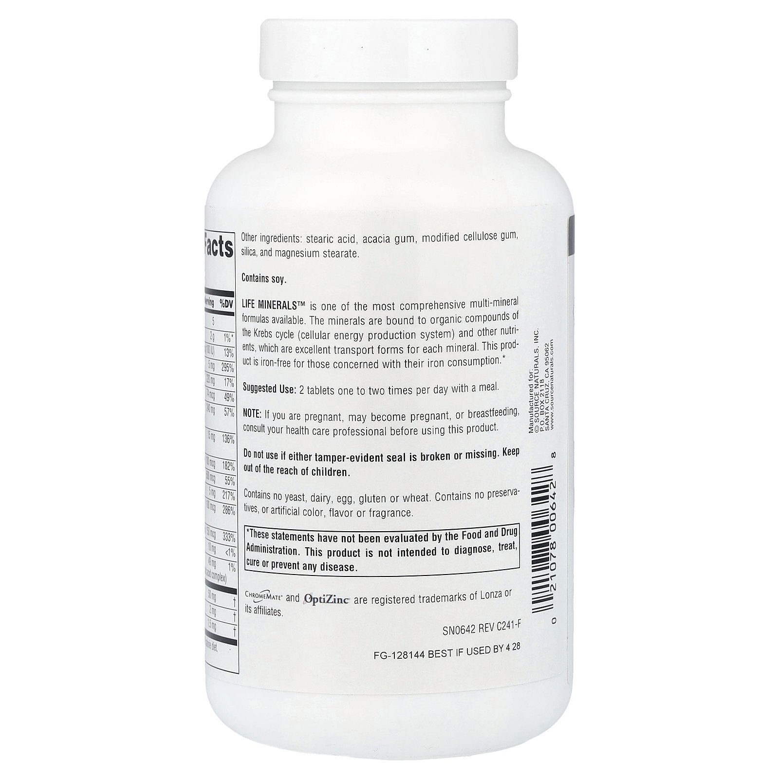 Life Minerals™ is one of the most comprehensive multi-mineral formulas available. The minerals are bound to organic compounds of the Krebs cycle (cellular energy production system) and other nutrients, which are excellent transport forms for each mineral. This product is iron-free for those concerned with their iron consumption.