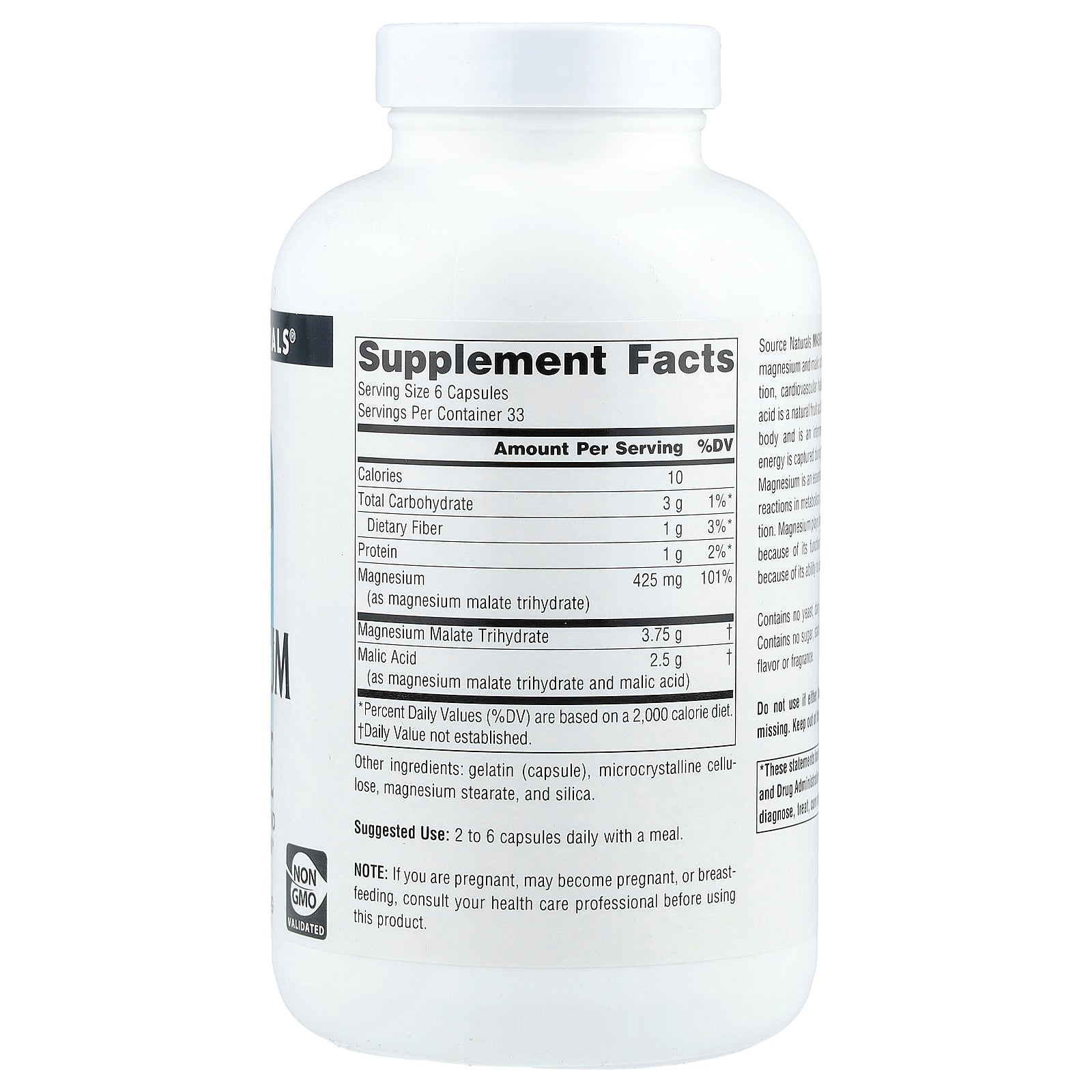 Source Naturals Magnesium Malate is a compound of magnesium and malic acid. It supports proper muscle function, cardiovascular health, and energy production. Malic acid is a natural fruit acid that is present in most cells in the body and is an intermediate in the Krebs cycle, where energy is captured during the metabolism of carbs and fats. Magnesium is and essential cofactor for over 300 enzymatic reactions in metabolism, ATP synthesis and energy production. Magnesium plays important roles in muscle relaxation, because of its function as a cofactor for enzymes and because of its ability to counterbalance calcium in the cell.