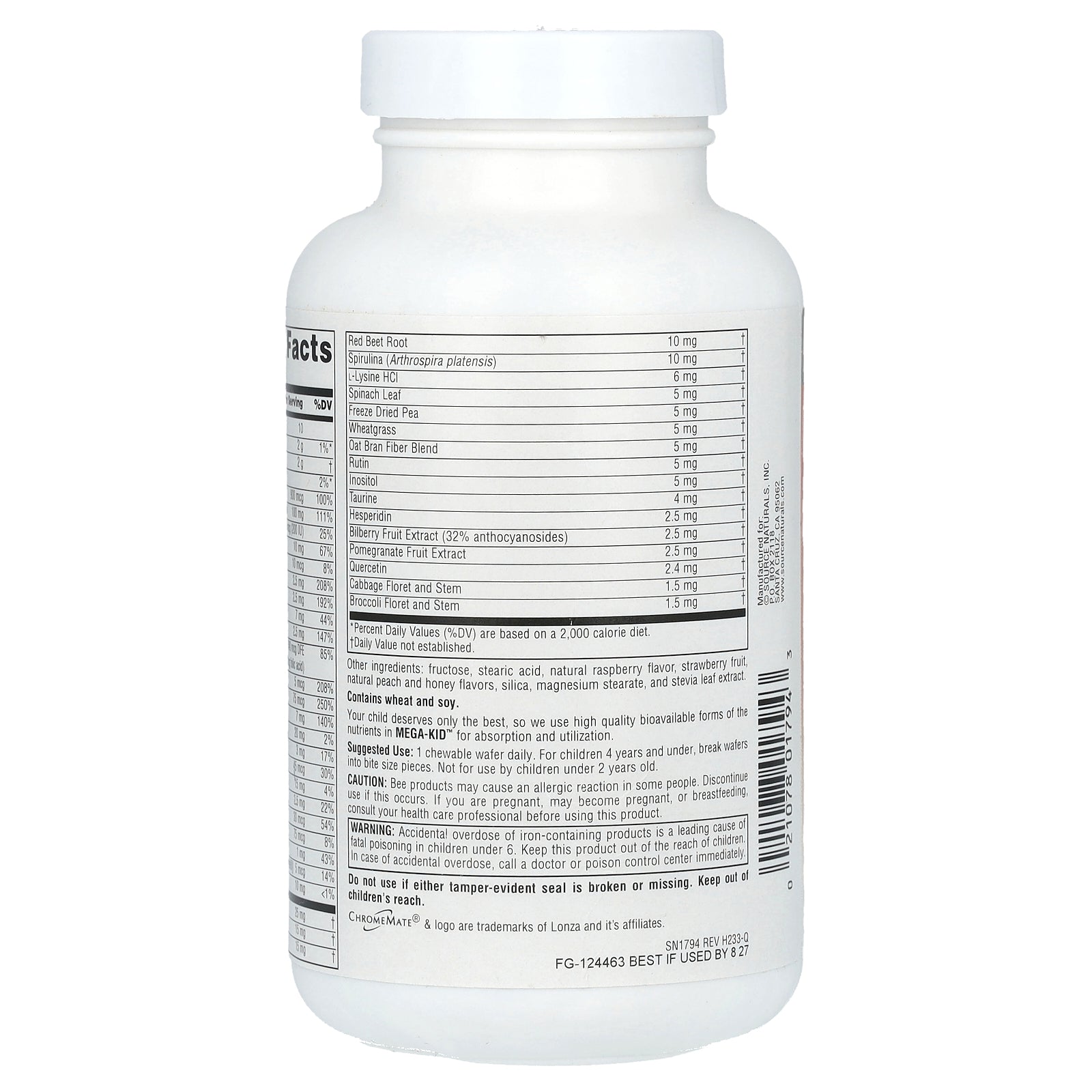 Fructose, stearic acid, natural raspberry flavor, strawberry fruit, natural peach and honey flavors, silica, magnesium stearate, and stevia leaf extract.