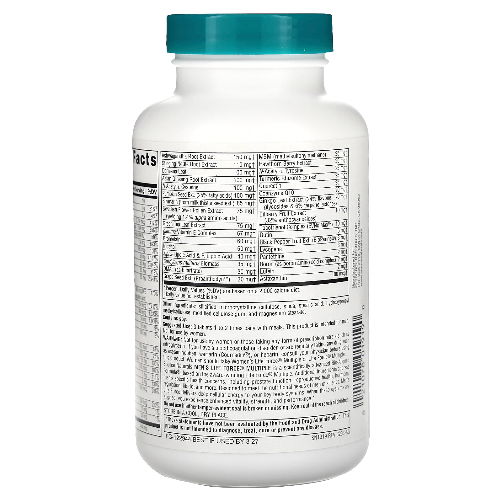 Source Naturals Men's Life Force® Multiple is a scientifically advanced Bio-Aligned Formula®, based on the award-winning Life Force® Multiple. Additional ingredients address men's specific health concerns, including prostate function, reproductive health, hormonal regulation, libido, and more. Designed to meet the nutritional needs of men of all ages, Men's Life Force delivers deep cellular energy to your key body systems. When these systems are aligned, you experience enhanced vitality, strength, and performance.