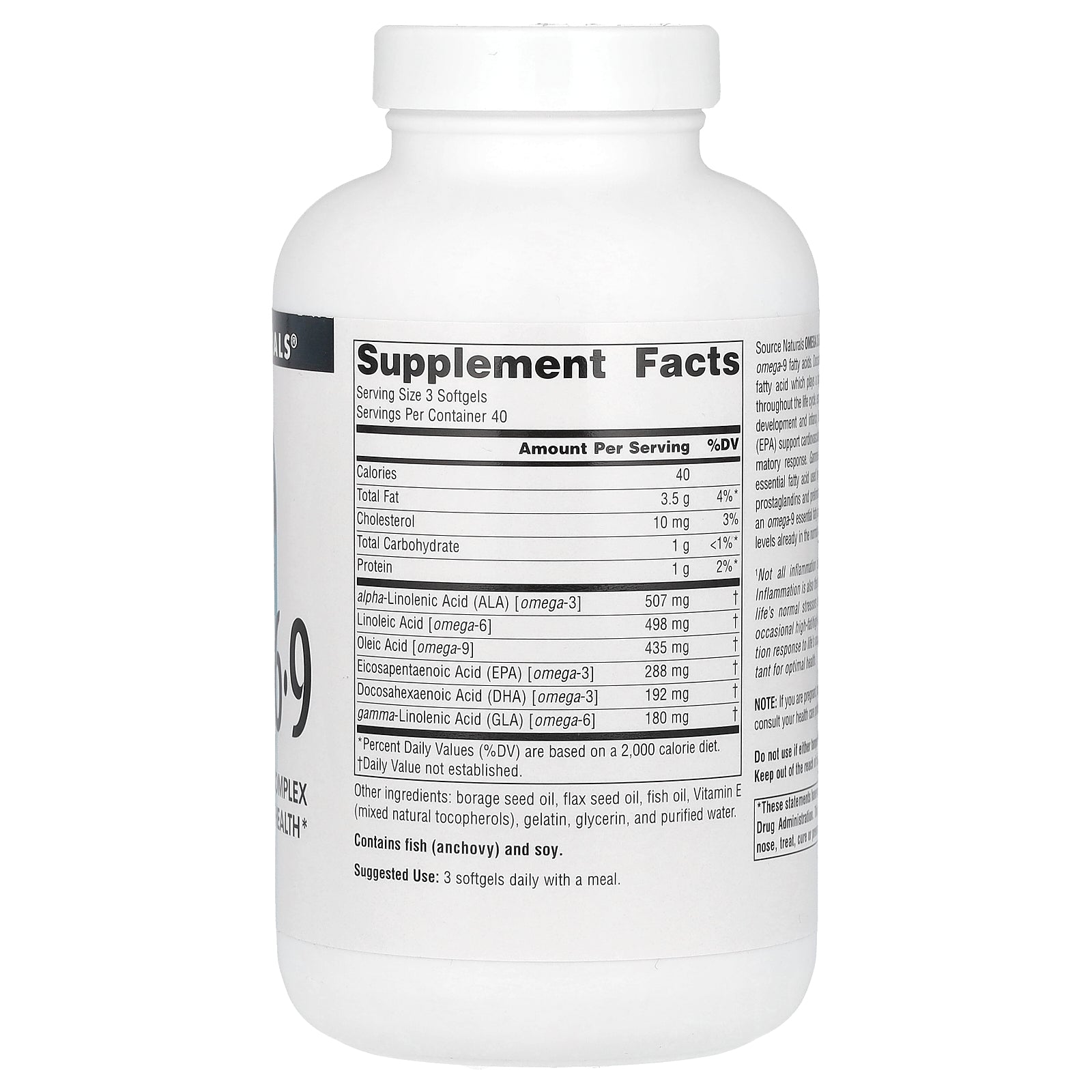 Source Naturals Omega 3.6.9 is an blend of omega-3, omega-6, and omega-9 fatty acids. Docosahexaenoic Acid (DHA) is an omega-3 fatty acid which plays a significant role in cerebral development throughout the life cycle, especially during the crucial period of fetal development and infancy. Both DHA and Eicosapentaenoic Acid (EPA) support cardiovascular health and the body's healthy inflammatory response. Gamma-Linolenic Acid (GLA) is an omega-6 essential fatty acid used by our cells to produce soothing PGE1 prostaglandins and preliminary evidence suggests that Oleic Acid, an Omega-9 essential fatty acid, may help maintain blood pressure levels already in the normal range.¹