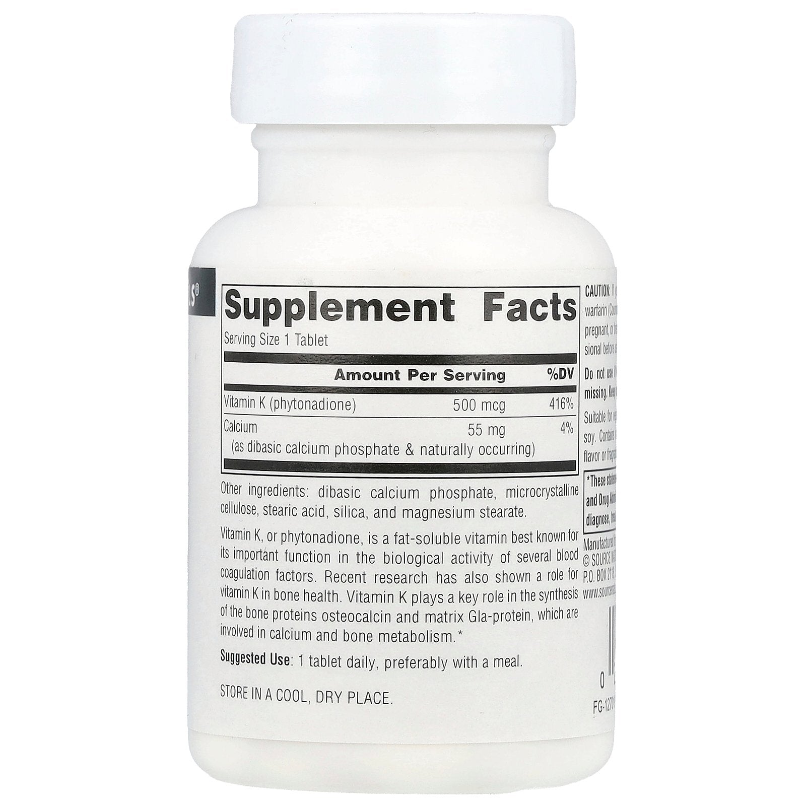 | Vitamin K (phytonadione) | 500 mcg | 416% |