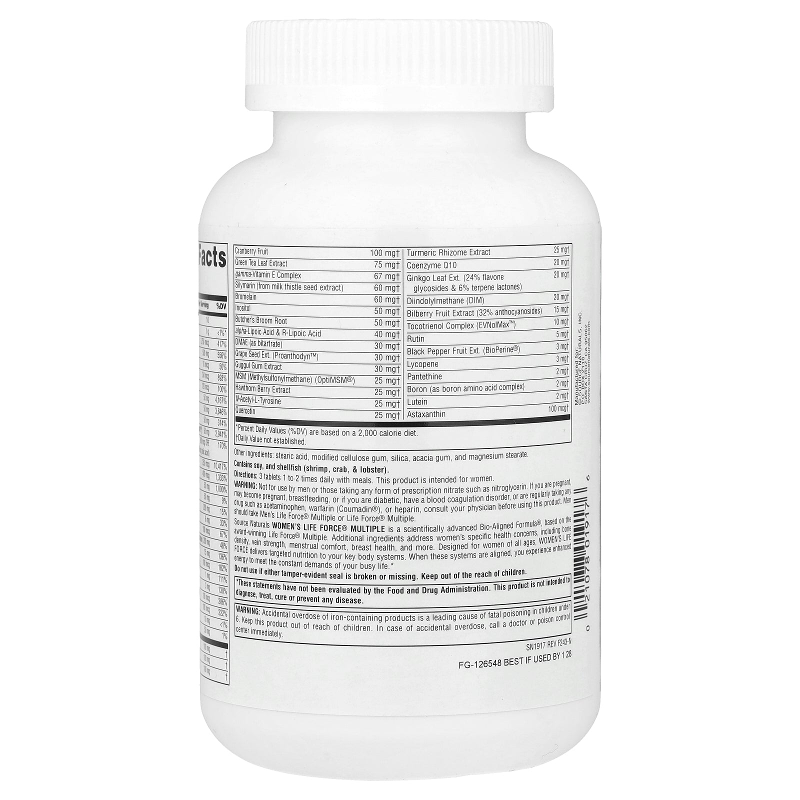 Source Naturals Women's Life Force® Multiple is a scientifically advanced Bio-Aligned Formula®, based on the award-winning Life Force® Multiple. Additional ingredients address women's specific health concerns, including bone density, vein strength, menstrual comfort, breast health, and more. Designed for women of all ages, Women's Life Force delivers targeted nutrition to your key body systems. When these systems are aligned, you experience enhanced energy to meet the constant demands of your busy life.