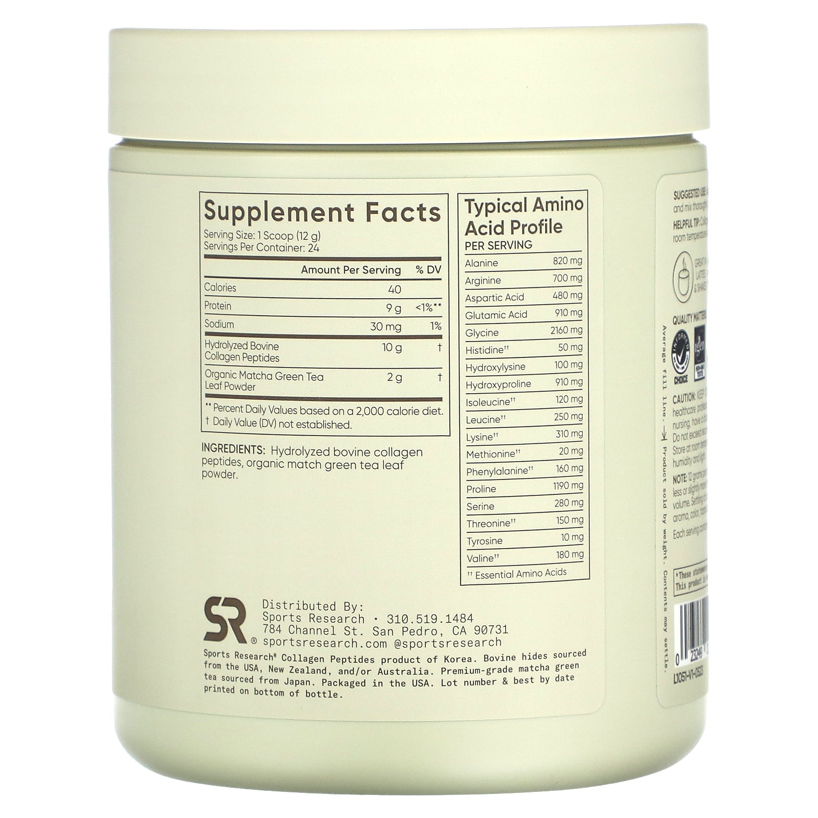 Meet your new morning ritual! Sports Research® Collagen Peptides with Matcha combines our best-selling hydrolyzed Collagen Peptides with premium grade, Organic Japanese Matcha Green Tea containing naturally occurring Caffeine and L-Theanine. Mixes easily into hot milk or water to make the perfect matcha latte or tea. And it is delicious flavor addition to protein shakes and smoothies.