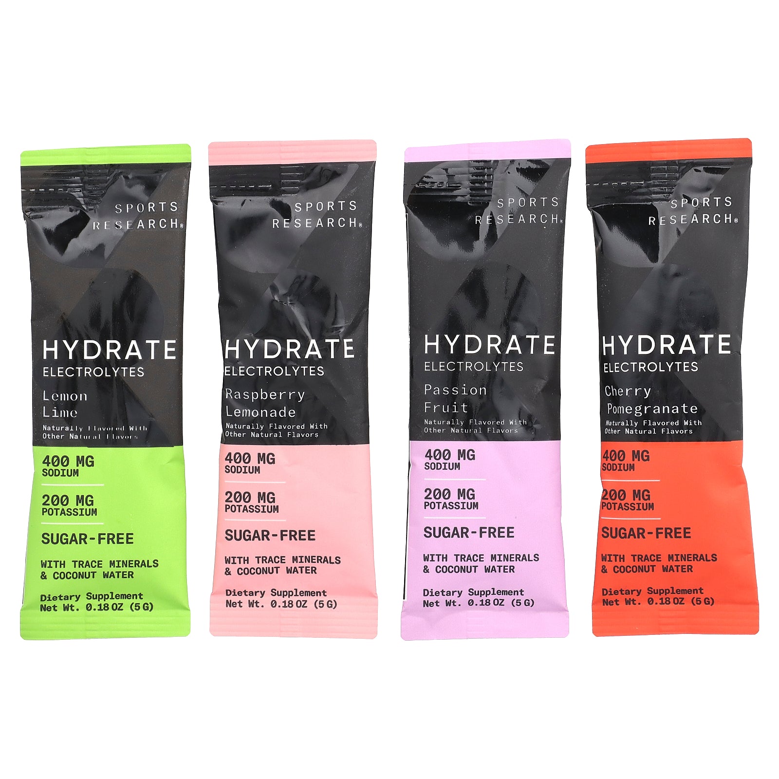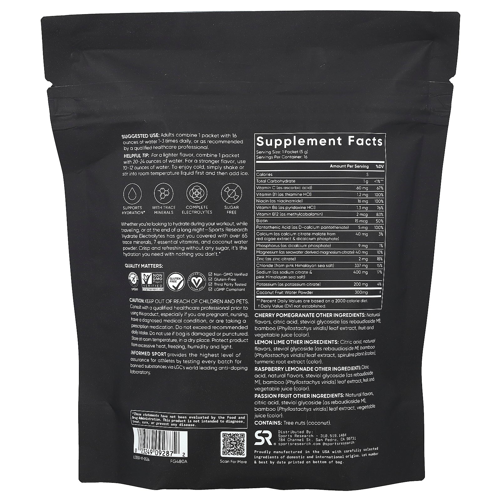 Whether you're looking to hydrate during your workout, while traveling, or at the end of a long night-Sports Research Hydrate Electrolytes has got you covered with over 65 trace minerals, 7 essential vitamins, and coconut water powder. Crisp and refreshing without any sugar, it's the hydration you need with nothing you don't.