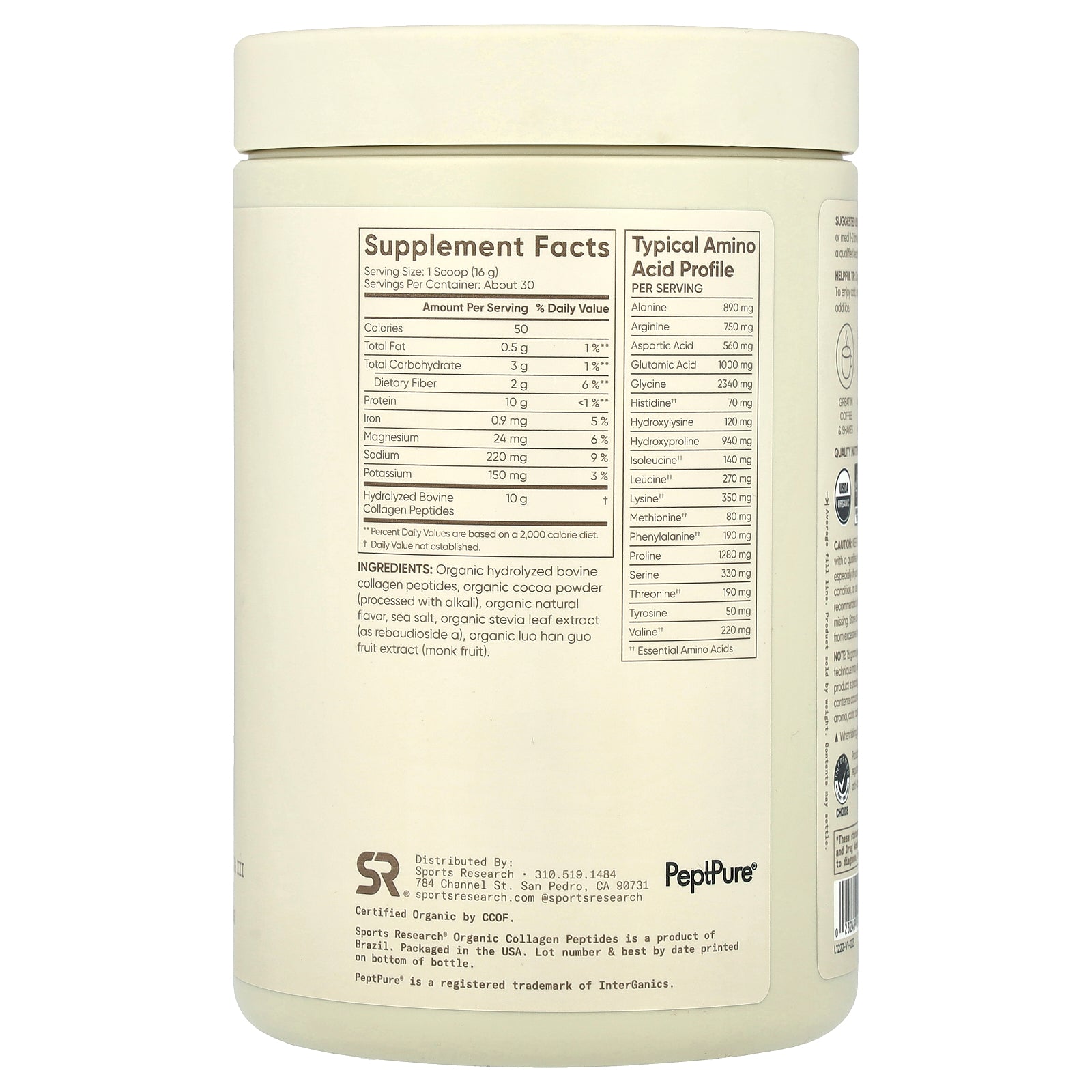 - 10 g Organic Collagen Peptides Per Serving