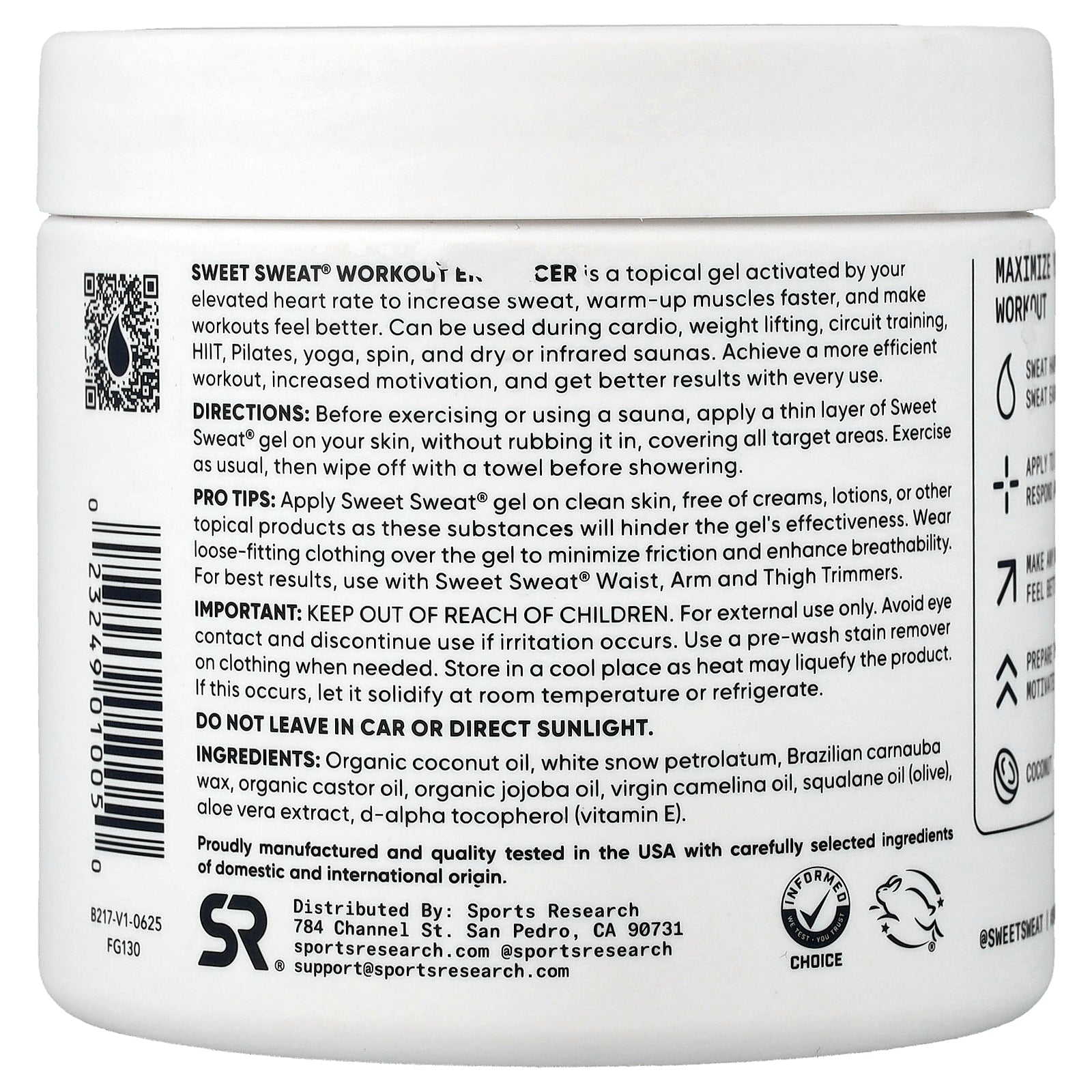 Sweet Sweat® Workout Enhancer is a topical gel activated by your elevated heart rate to increase sweat, warm-up muscles faster, and make workouts feel better. Can be used during cardio, weight lifting, circuit training, HIIT, Pilates, yoga, spin, and dry or infrared saunas. Achieve a more efficient workout, increased motivation, and get better results with every use.