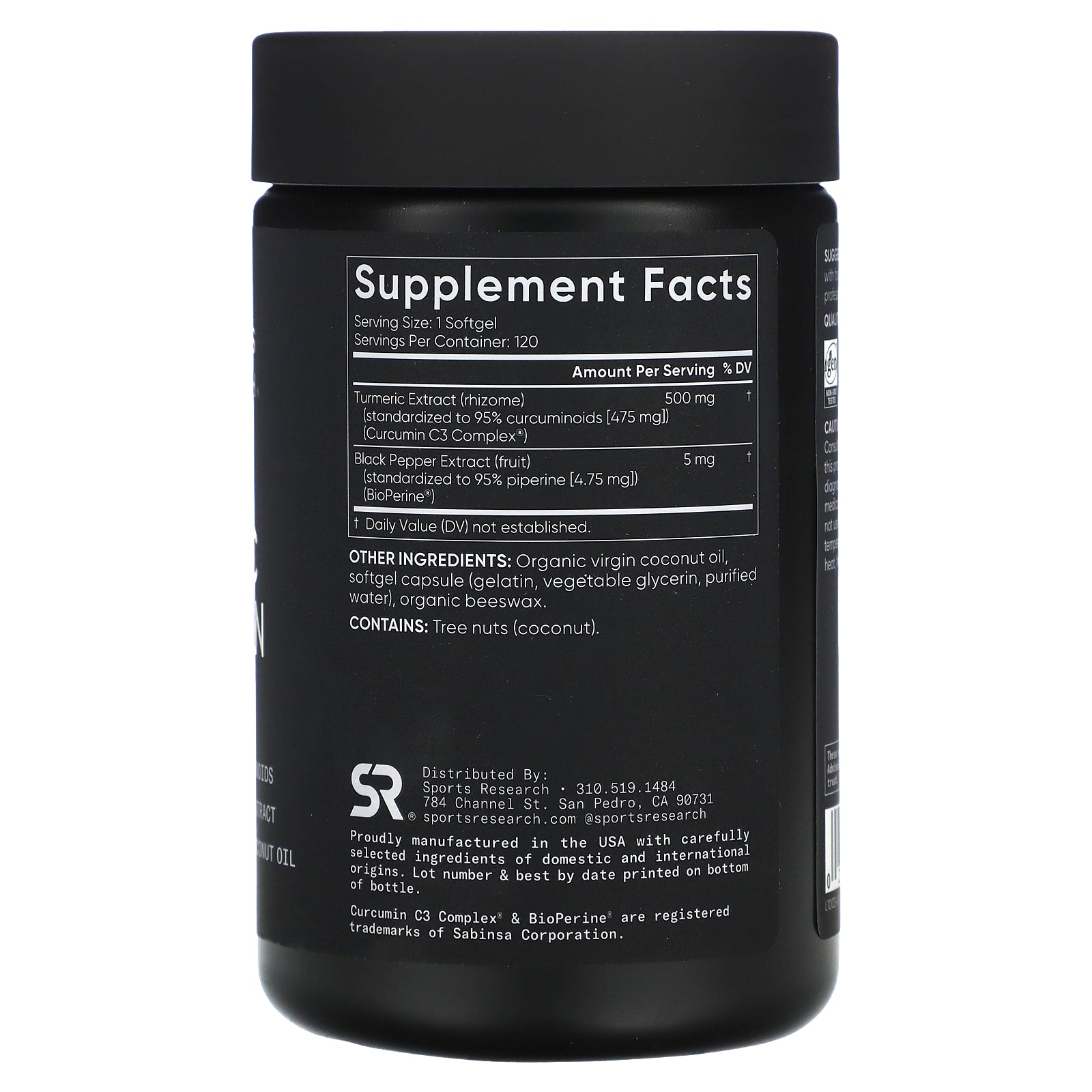 SR® Turmeric Curcumin featuring C3 Complex®, a premium form of curcumin, standardized to 475 mg of curcuminoids per softgel and combined with Virgin Coconut Oil and BioPerine® (black pepper extract).