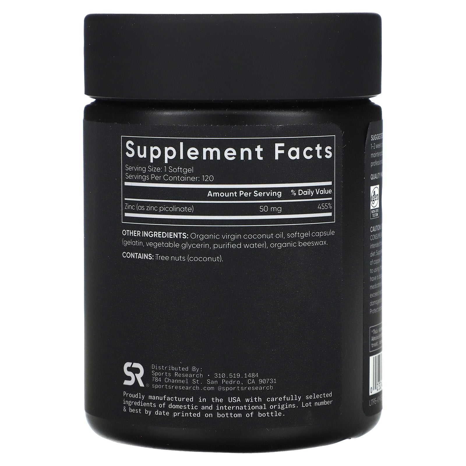 Never settle for less when it comes to your health. That's why we only formulate with zinc picolinate, providing 50 mg of elemental zinc per softgel. Combined with organic coconut oil, Sports Research® Zinc Picolinate provides you with the immune health support you need to take on the day.
