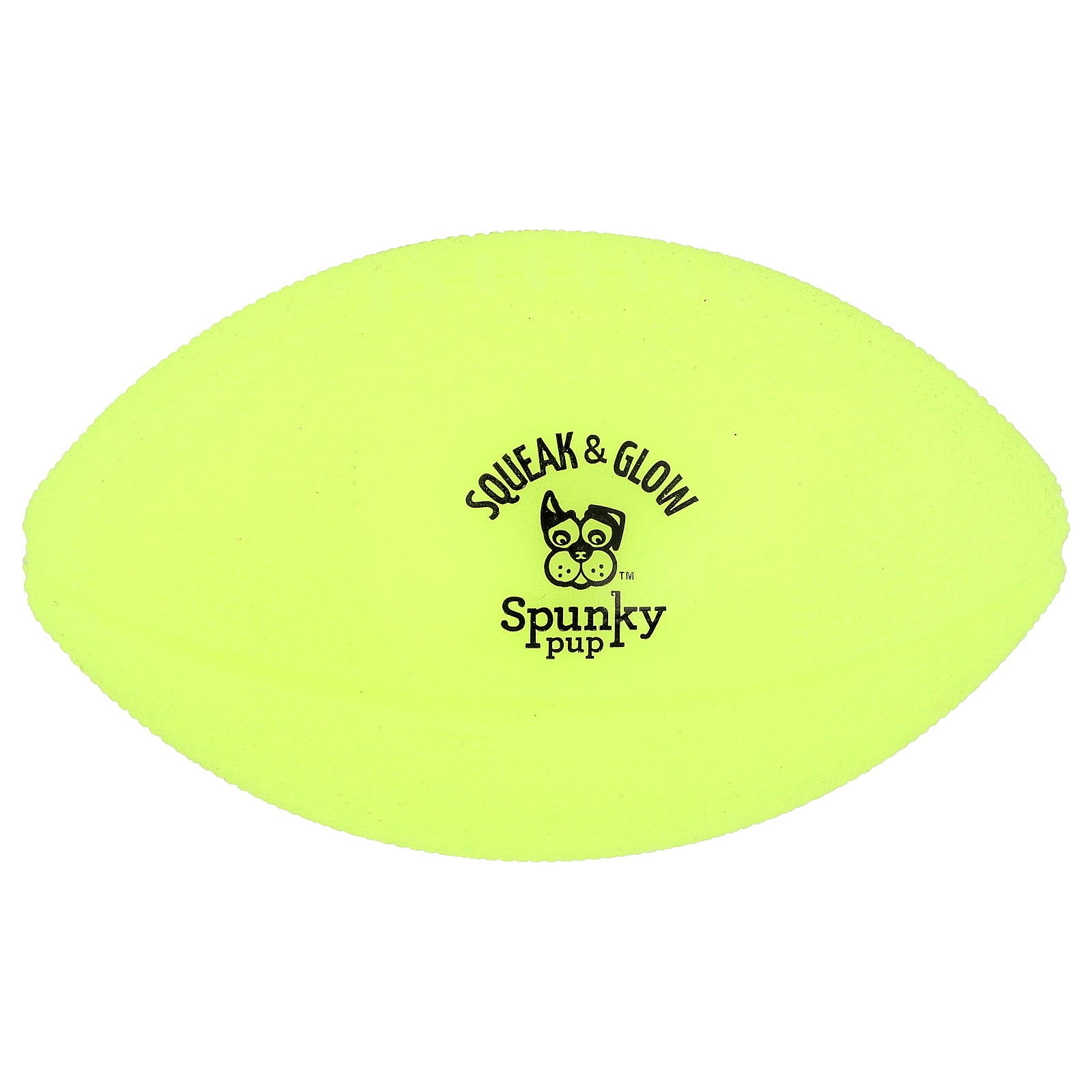 Light up the night with the Squeak & Glow Football from Spunky Pup! Get ready for some serious tailgating fun, as this non-toxic, glow-in-the-dark football squeaks and glows once exposed to natural or artificial light for about 20 minutes. With a textured surface and easy-to-throw design, your pup will be the MVP of the backyard! Go long!