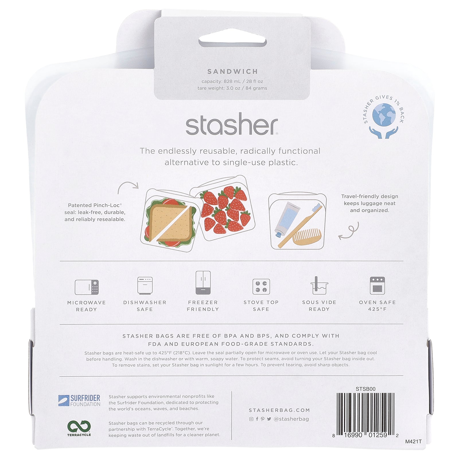 Stasher bags are free of BPA and BPS, and comply with FDA and European Food-grade Standards.