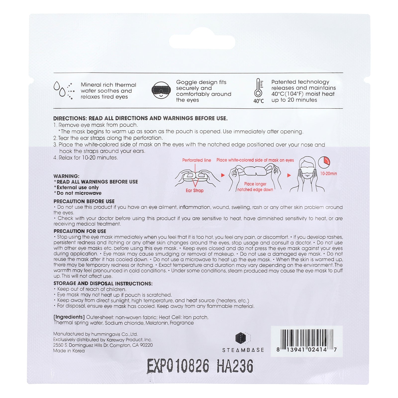 - Under some conditions, steam produced may cause the eye mask to puff up. This will not affect use.