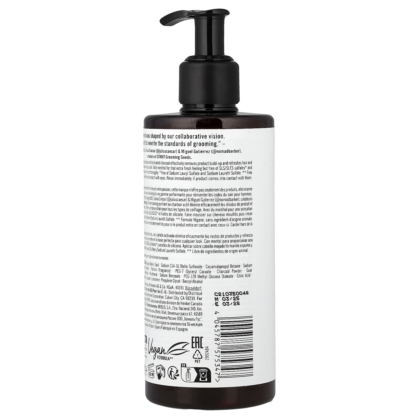 This deep cleansing shampoo with activated charcoal effectively removes product build-up and refreshes hair and scalp making it the ideal clean canvas for any look. With menthol for that extra fresh feeling but free of SLS/SLES sulfates* and silicone oils.