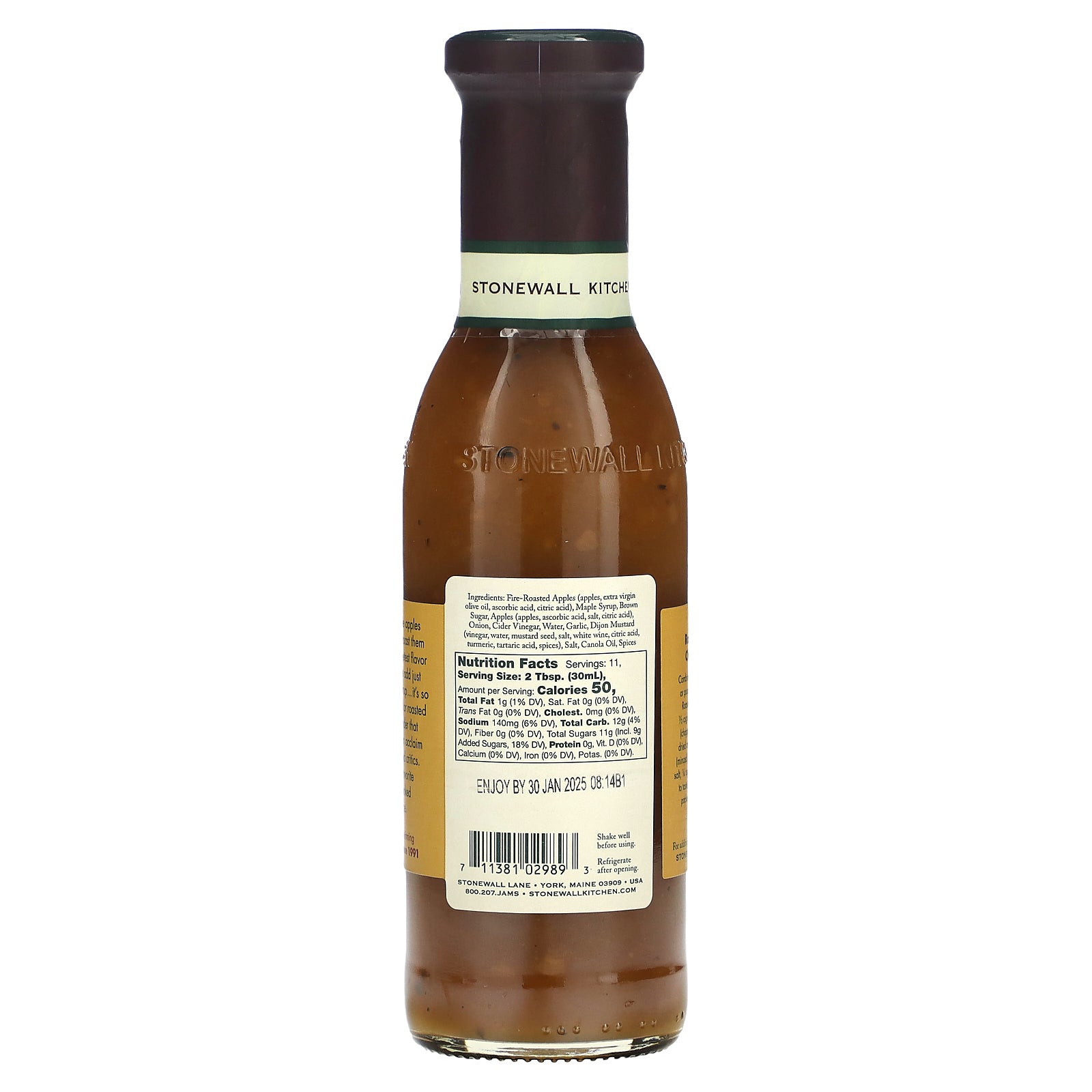 Fire-roasted apples (apples, extra virgin olive oil, ascorbic acid, citric acid), maple syrup, brown sugar, apples (apples, ascorbic acid, salt, citric acid), onion, cider vinegar, water, garlic, dijon mustard (vinegar, water, mustard seed, salt, white wine, citric acid, turmeric, tartaric acid, spices), salt, canola oil, spices