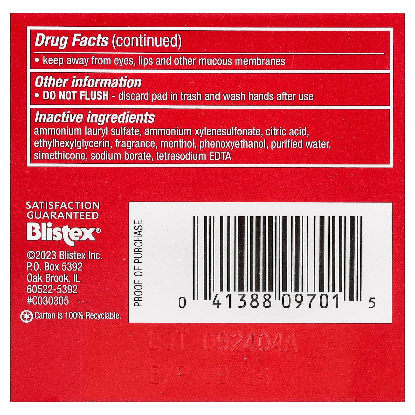 | Inactive ingredients: Ammonium lauryl sulfate, ammonium xylenesulfonate, citric acid, ethylhexylglycerin, fragrance, menthol, phenoxyethanol, purified water, simethicone, sodium borate, tetrasodium edta. |