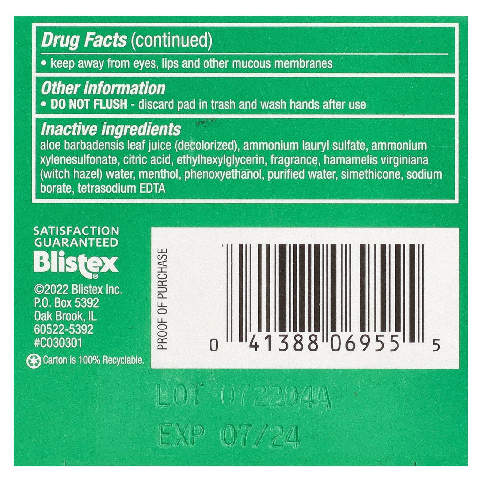 | Inactive Ingredients: Aloe barbadensis leaf juice (decolorized), ammonium lauryl sulfate, ammonium xylenesulfonate, citric acid, ethylhexylglycerin, fragrance, hamamelis virginiana (witch hazel) water, menthol, phenoxyethanol, purified water, simethicone, sodium borate, tetrasodium edta. |