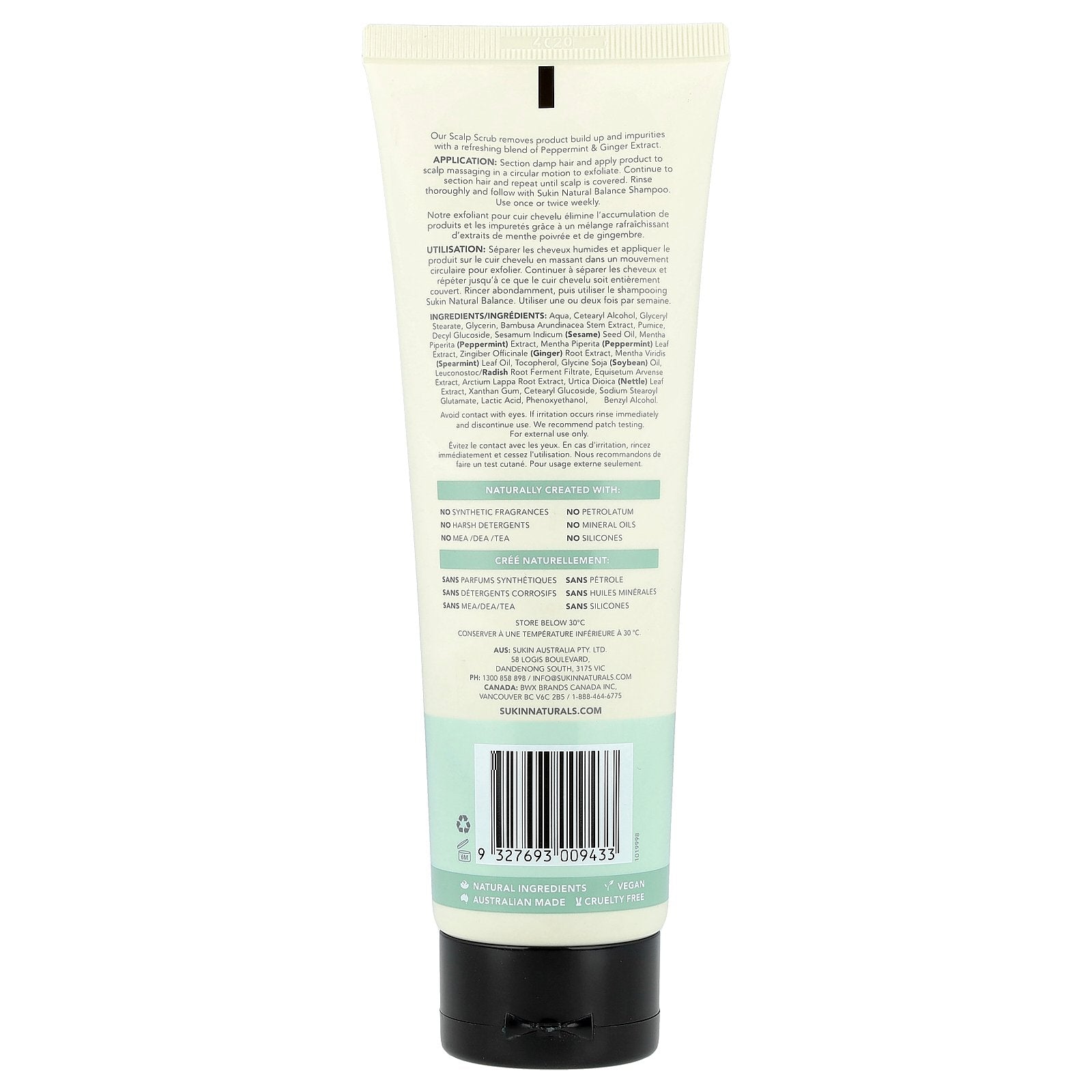 Application: Section damp hair and apply product to scalp massaging in a circular motion to exfoliate. Continue to section hair and repeat until scalp is covered. Rinse thoroughly and follow with Sukin Natural Balance Shampoo. Use once or twice weekly.