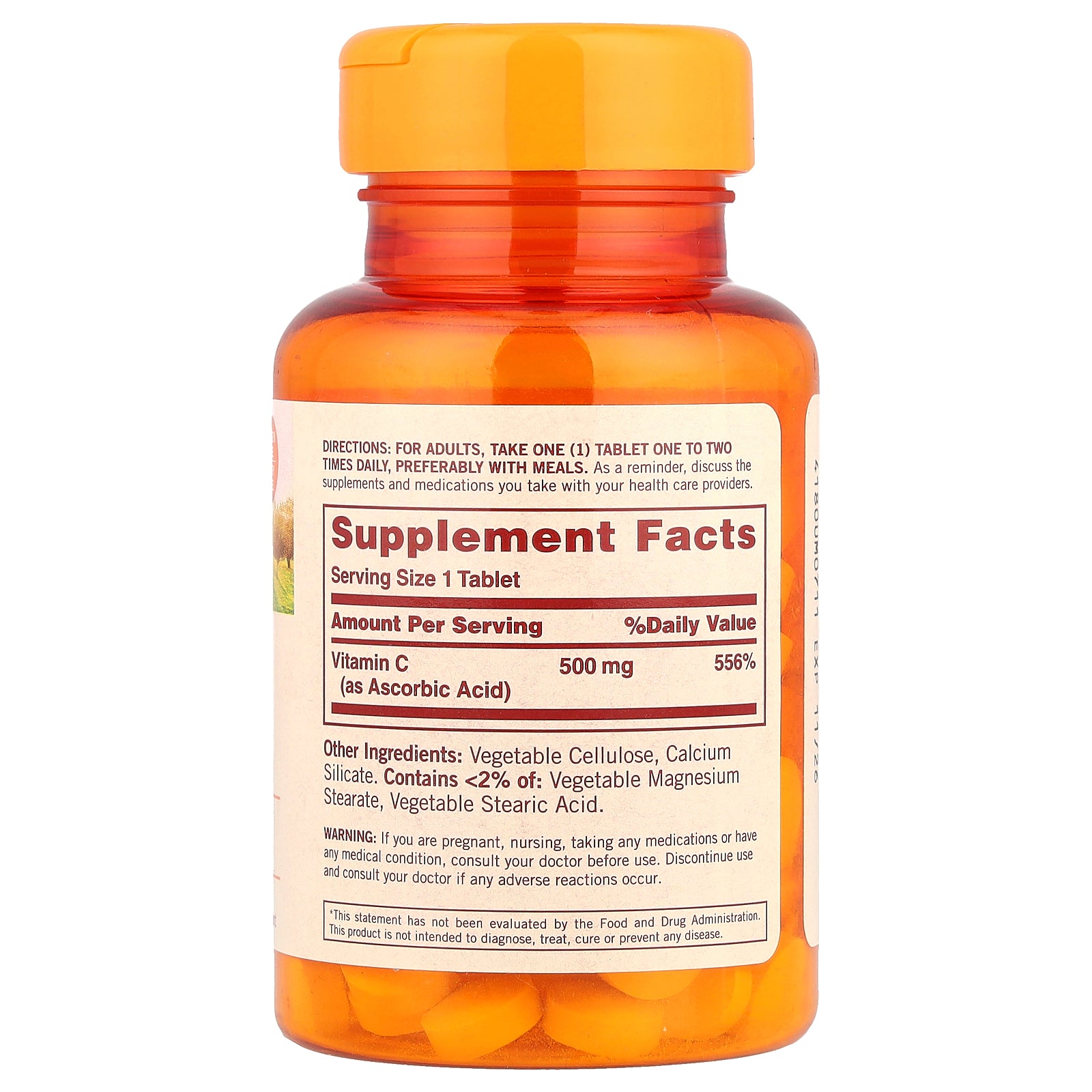 | Vitamin C (as Ascorbic Acid) | 500 mg | 556% |