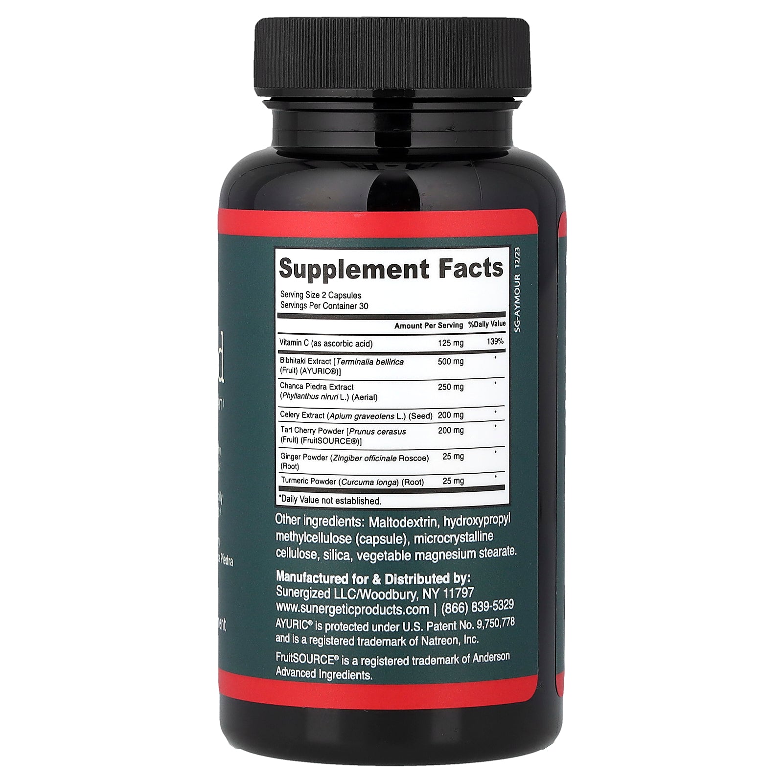 Powerful Uric Acid Support: Our Uric Acid Support Supplement is formulated with ingredients to help support healthy uric acid levels already within normal range. Our Uric Acid Support Supplement has a blend of herbs including Tart Cherry, Celery Seed Extract, Turmeric, and Chanca Piedra.