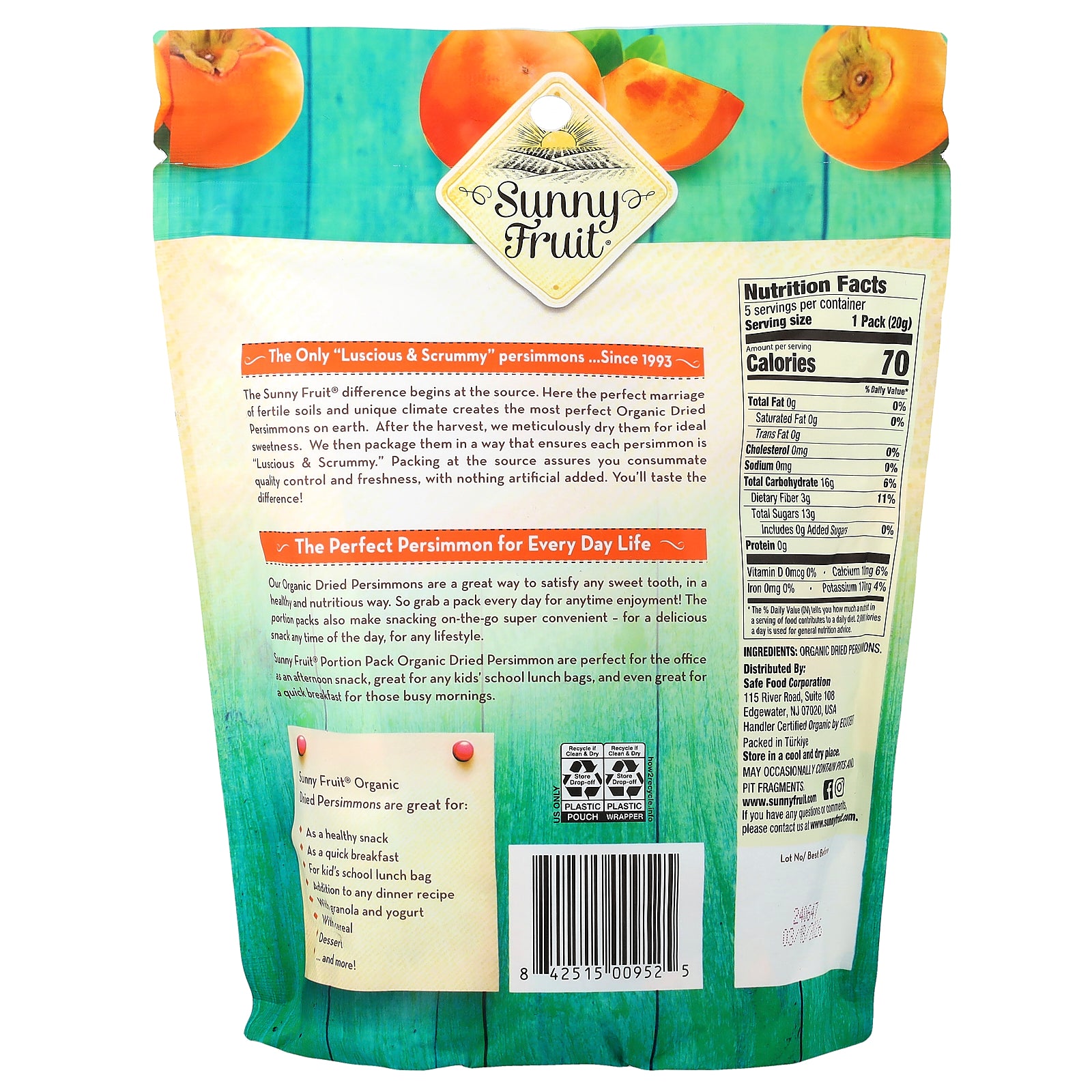 Sunny Fruit® Portion Pack Organic Dried Persimmon are perfect for the office as an afternoon snack, great for any kids' school lunch bags, and even great for a quick breakfast for those busy mornings.