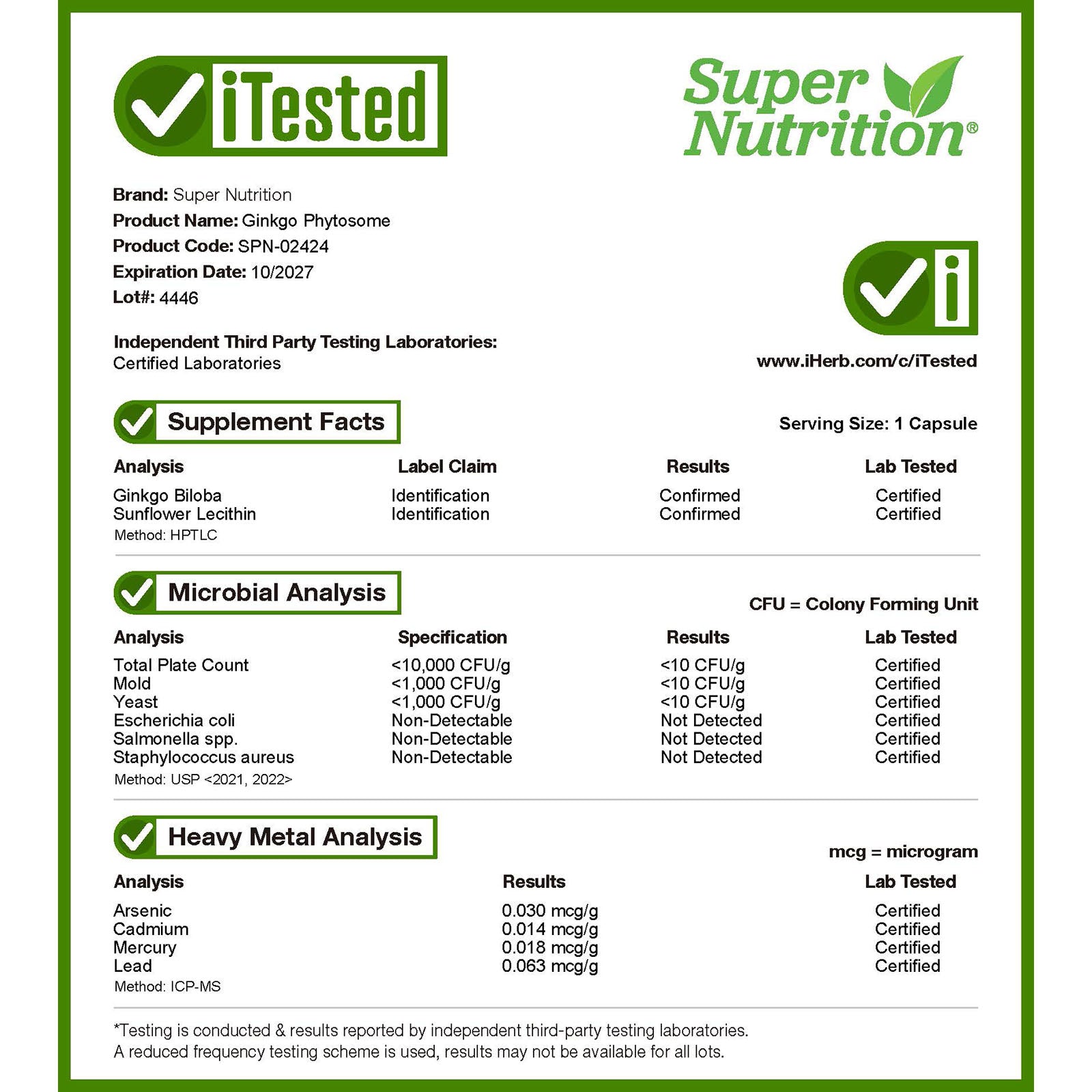 Super Nutrition, Ginkgo Phytosome, 360 mg, 60 Veggie Capsules