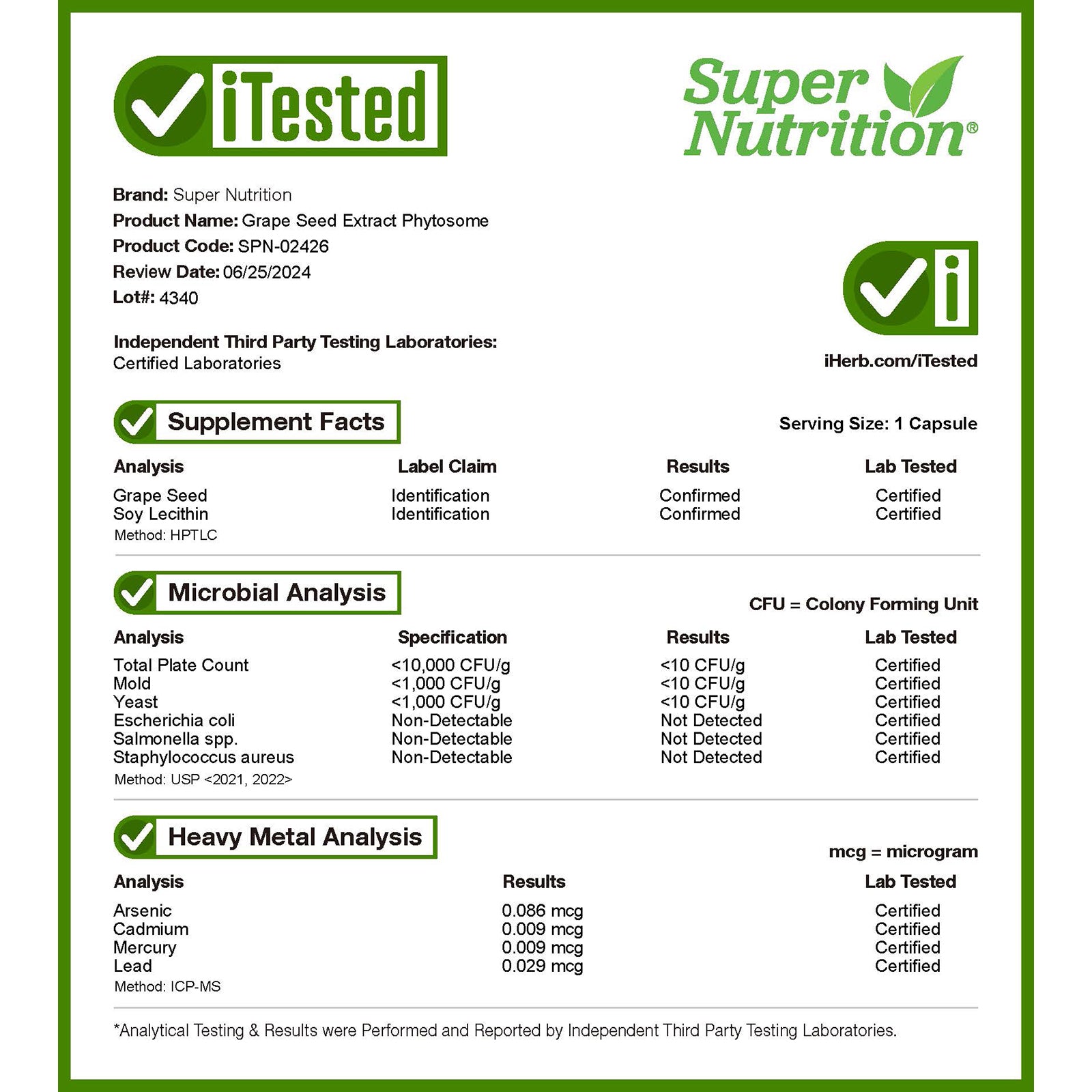 Super Nutrition® Grape Seed Extract Phytosome® contains a patented Grape Seed Extract Phospholipid Maxtrix, Leucoselect® that has been shown to support cardiovascular health and antioxidant function*.
