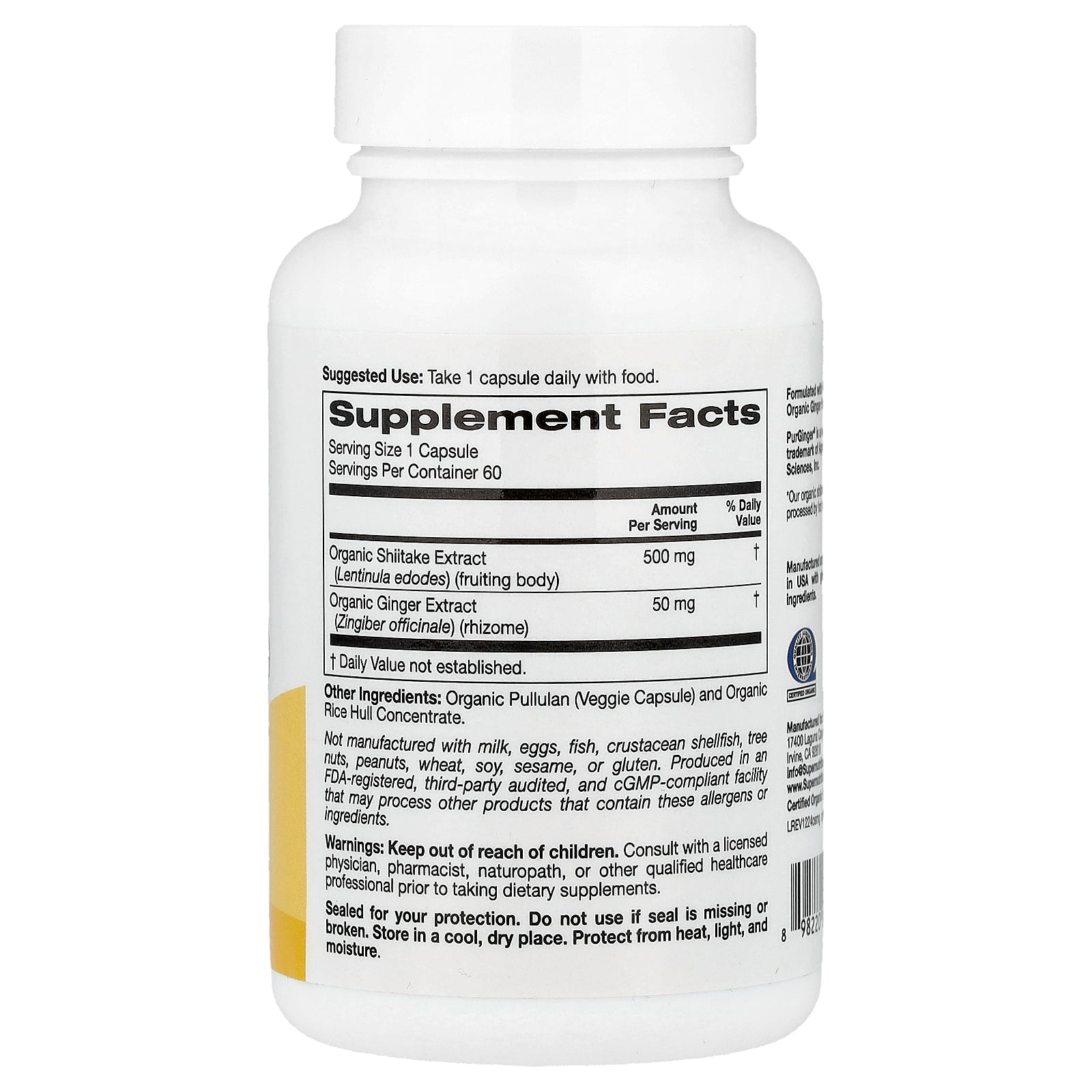 - Formulated with 500 mg of Organic Shiitake Mushroom Extract and 50 mg of PurGinger® Organic Ginger Extract