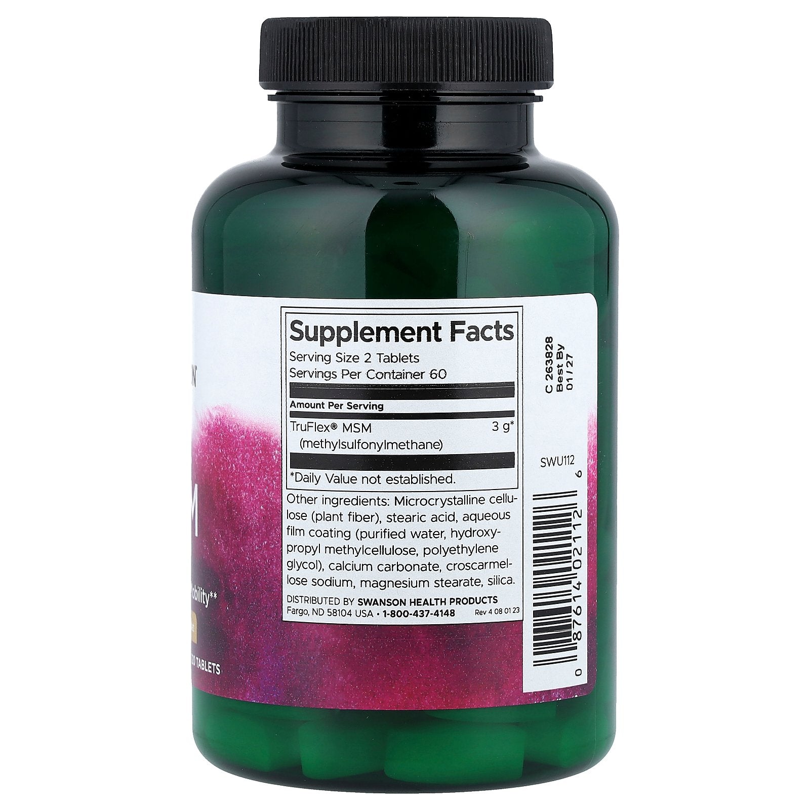 The answer to your joint health concerns may be as simple as three letters: MSM. They stand for methyl-sulfonyl-methane, an organic form of the essential mineral sulfur. Sulfur is important because the body needs it to maintain vital tissues like cartilage, ligaments, tendons and skin. Although MSM pills can be used to promote digestive health and aid the body’s ability to adapt to stress, the most popular use for MSM appears to be to support joint health. Swanson Ultra MSM tablets deliver 1,500 mg of biologically active MSM for easy assimilation.