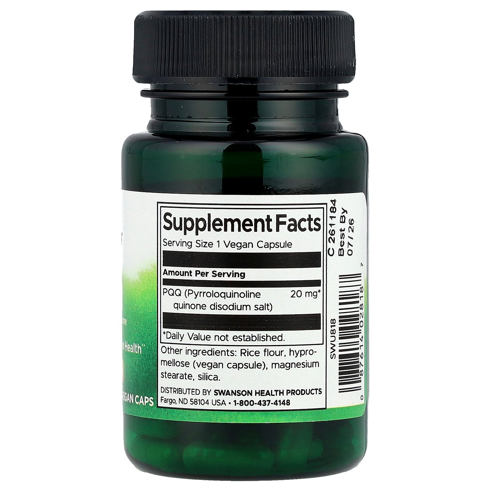 Available from Swanson Health Products, PQQ (Pyrroloquinoline quinone) is a relatively newly discovered vitamin-like nutrient related to the B-vitamin family. PQQ is described as powerhouse that brings together some of the most beneficial aspects of vitamins C, B2 and B6 for your body. The breadth of PQQ's potential benefits is nothing short of amazing.