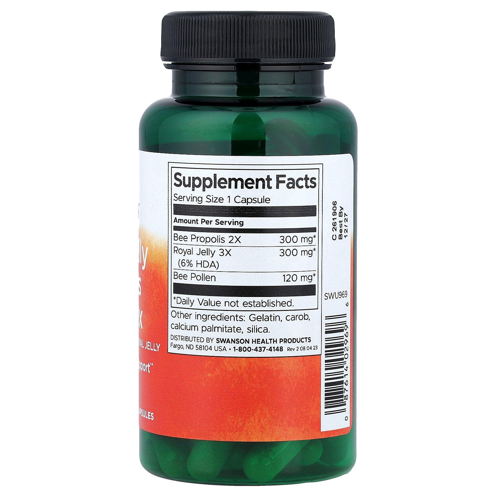Swanson Royal Jelly Propolis Complex is a one-of-a-kind immune support formula that combines bee propolis, royal jelly and bee pollen—three unique substances, each with its own benefits for the body. Bee pollen provides an energy boost. Propolis is also an excellent energizer, and it delivers powerful nourishment for the immune system. Royal jelly delivers an immune enhancer known as hydroxydecenoic acid (HDA), which reinforces the body's cellular level defenses. The royal jelly in Royal Jelly Propolis Complex gives you a great way to strengthen your body's defensive functions.