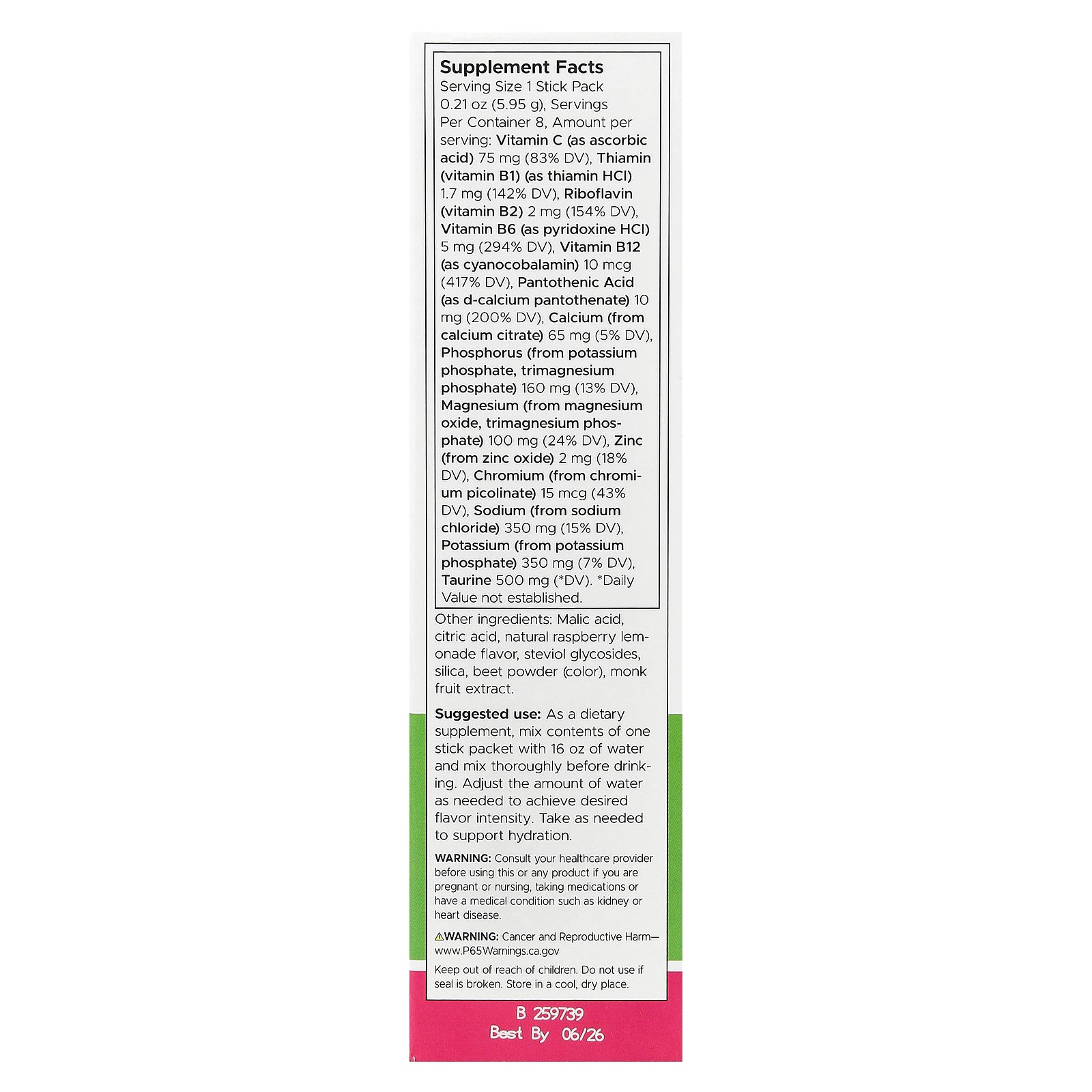 Malic acid, citric acid, natural raspberry lemonade flavor, steviol glycosides, silica, beet powder (color), monk fruit extract.