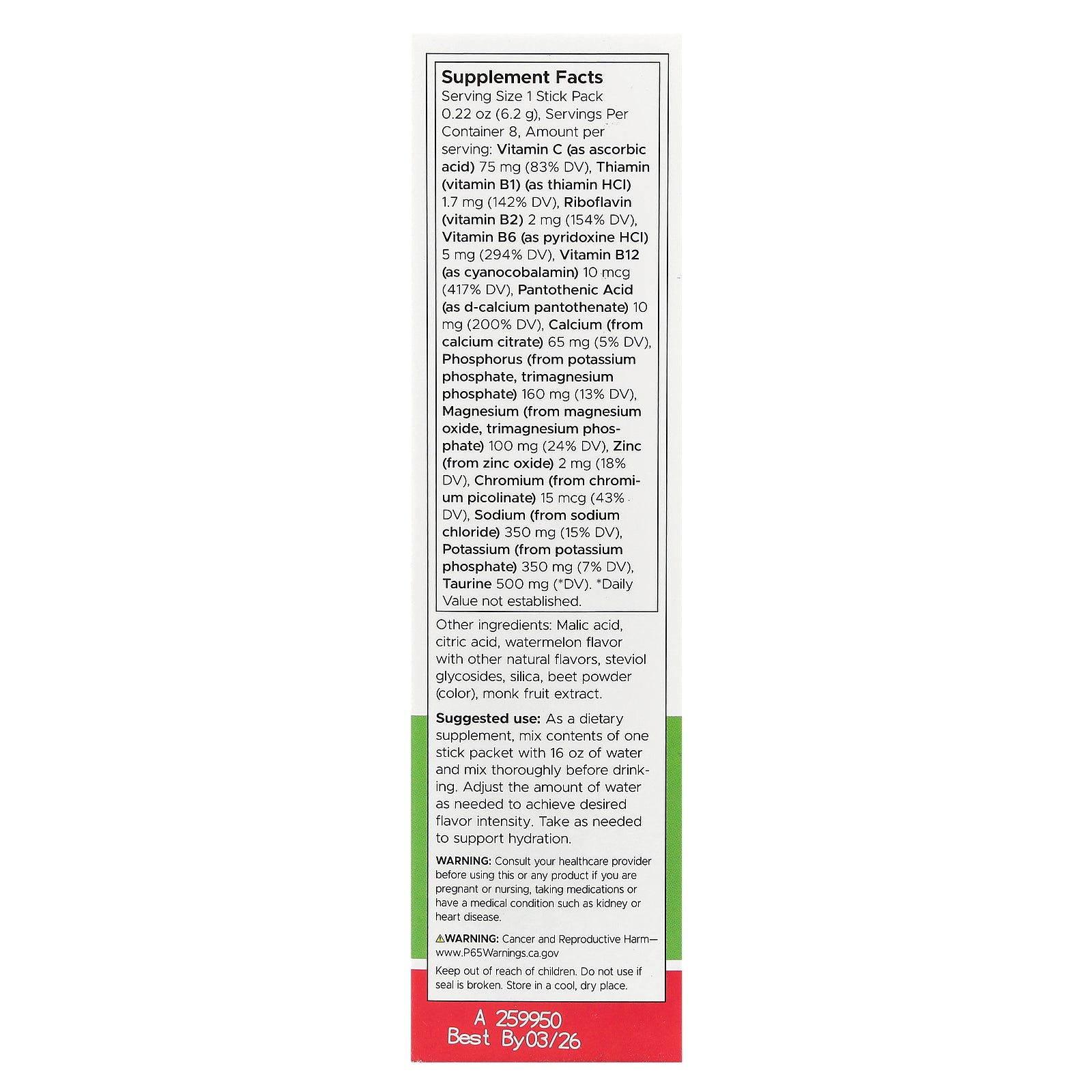 Malic acid, citric acid, watermelon flavor with other natural flavors, steviol glycosides, silica, beet powder (color), monk fruit extract.