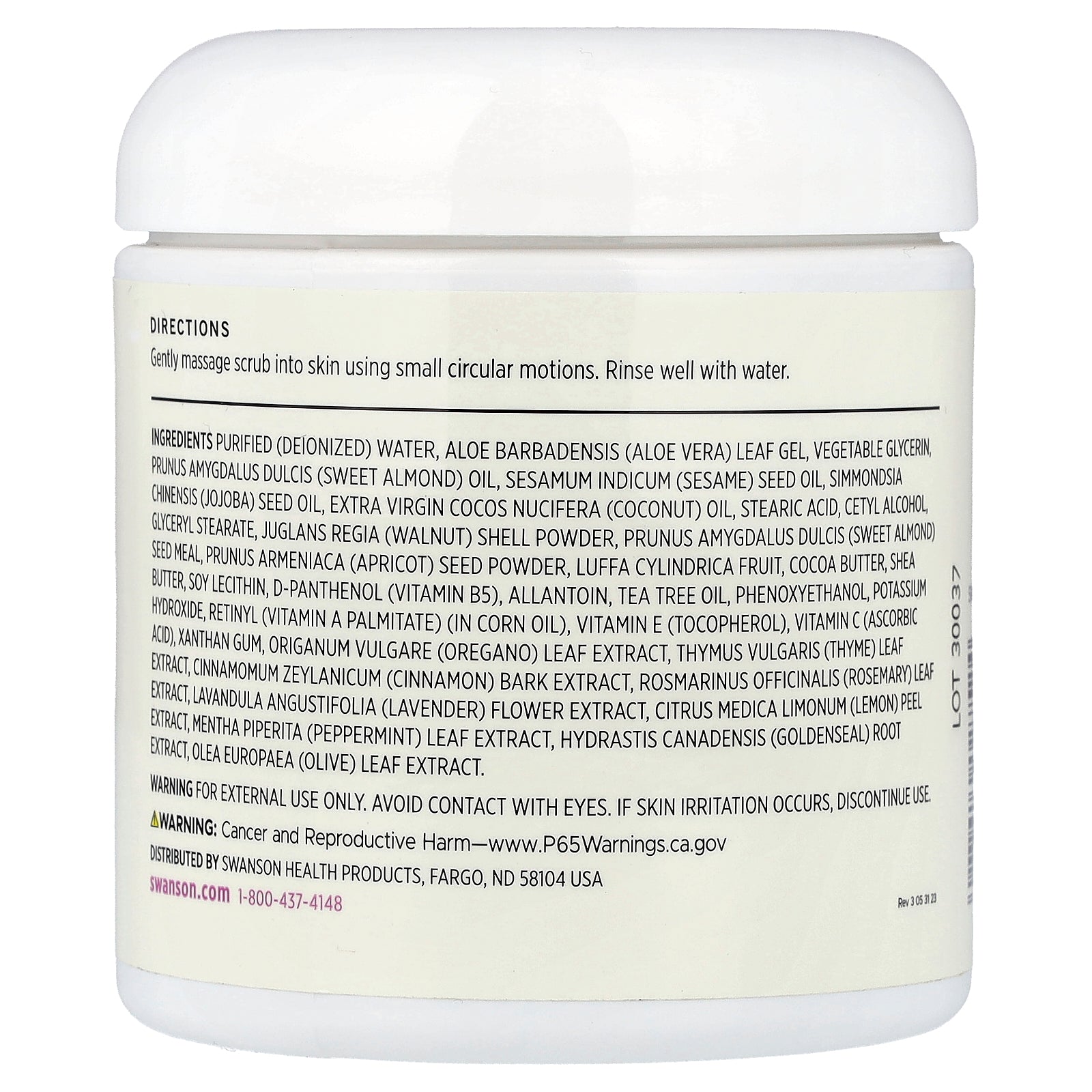 Our new exfoliating scrub makes it easy to maintain a youthful glow! Apricot seeds, walnut shells and loofah powder gently exfoliate to remove dull, dry surface cells. Almond meal, allantoin and vitamin E nourish healthy new skin. And tea tree oil goes deep to cleanse and protect, keeping your skin fresh day in and day out. Compare our new scrub to other popular products on the store shelves and we think you'll agree: Swanson delivers great savings without compromising results.
