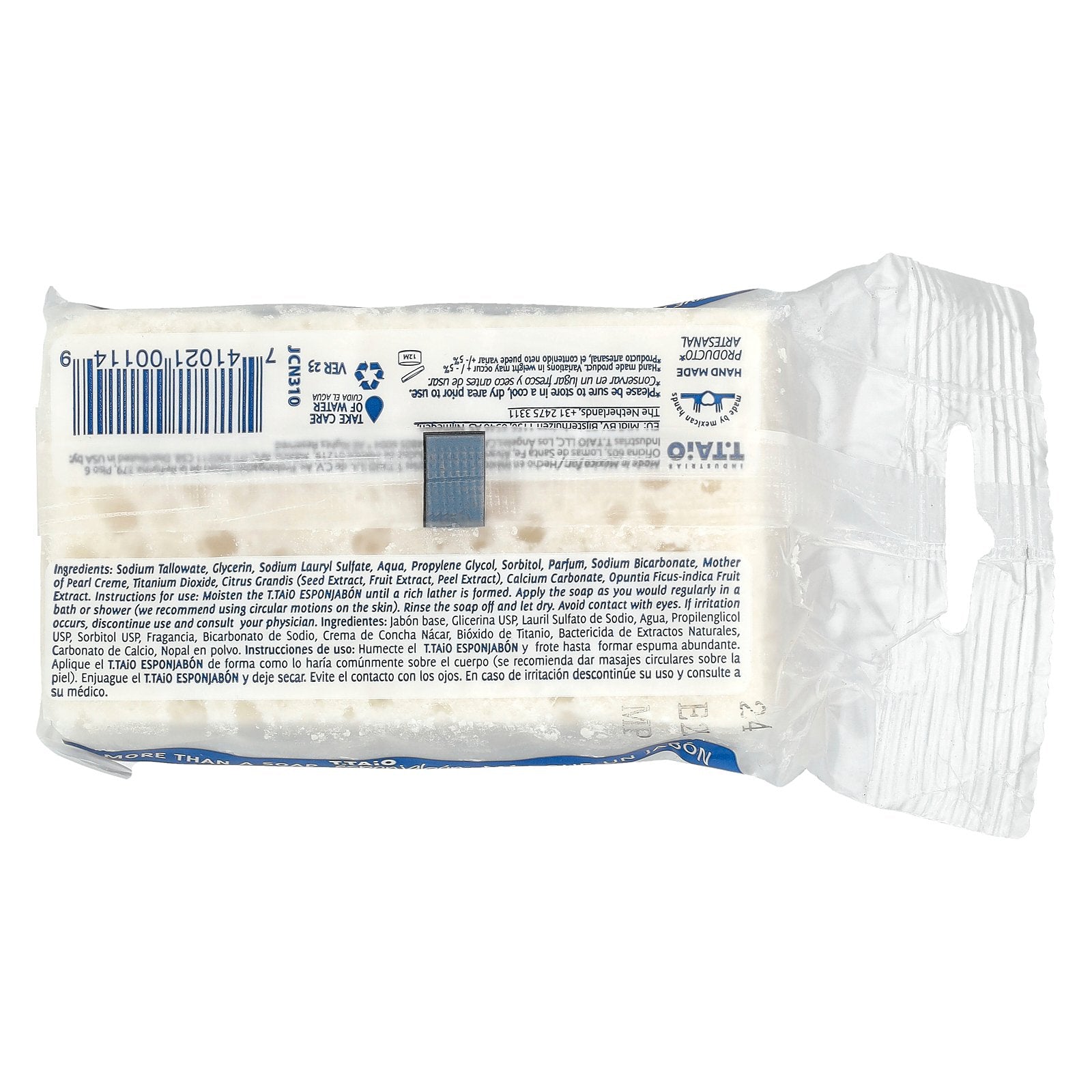 Moisten the T. Taio Esponjabon™ until a rich lather is formed. Apply the soap as you would regularly in a bath or shower (we recommend using circular motions on the skin). Rinse the soap off and let dry.