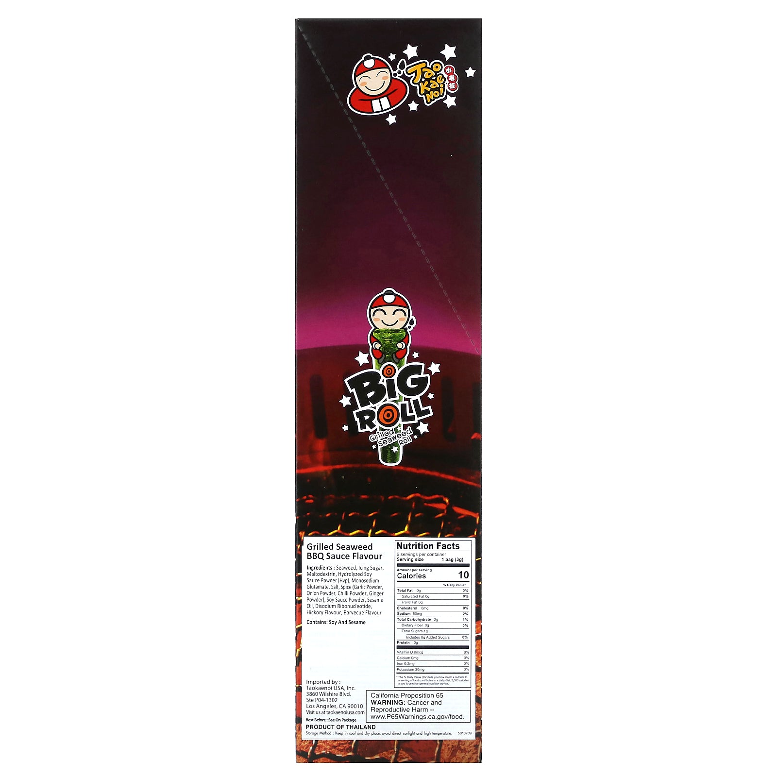 Seaweed, icing sugar, maltodextrin, hydrolyzed soy sauce powder (HVP), monosodium glutamate, salt, spice (garlic powder, onion powder, chili powder, ginger powder), soy sauce powder, sesame oil, disodium ribonucleotide, hickory flavour, barbecue flavour.