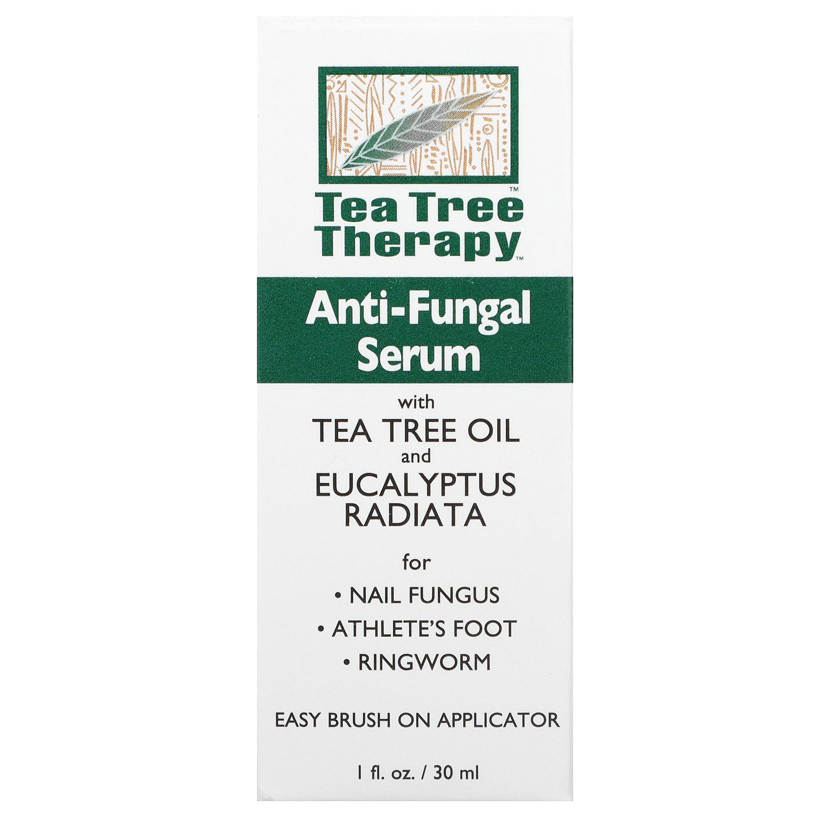Tea Tree Therapy Anti-Fungal Serum combines undecylenic acid, a proven and potent anti-fungal with Tea Tree Oil and Eucalyptus radiata. Tea Tree Oil is a proven anti-microbial and Eucalyptus radiata is an antiseptic and anti-microbial. Together they work to rid the body of fungal infections. Easy brush on application. The aloe in the formula soothes burning and itching skin.