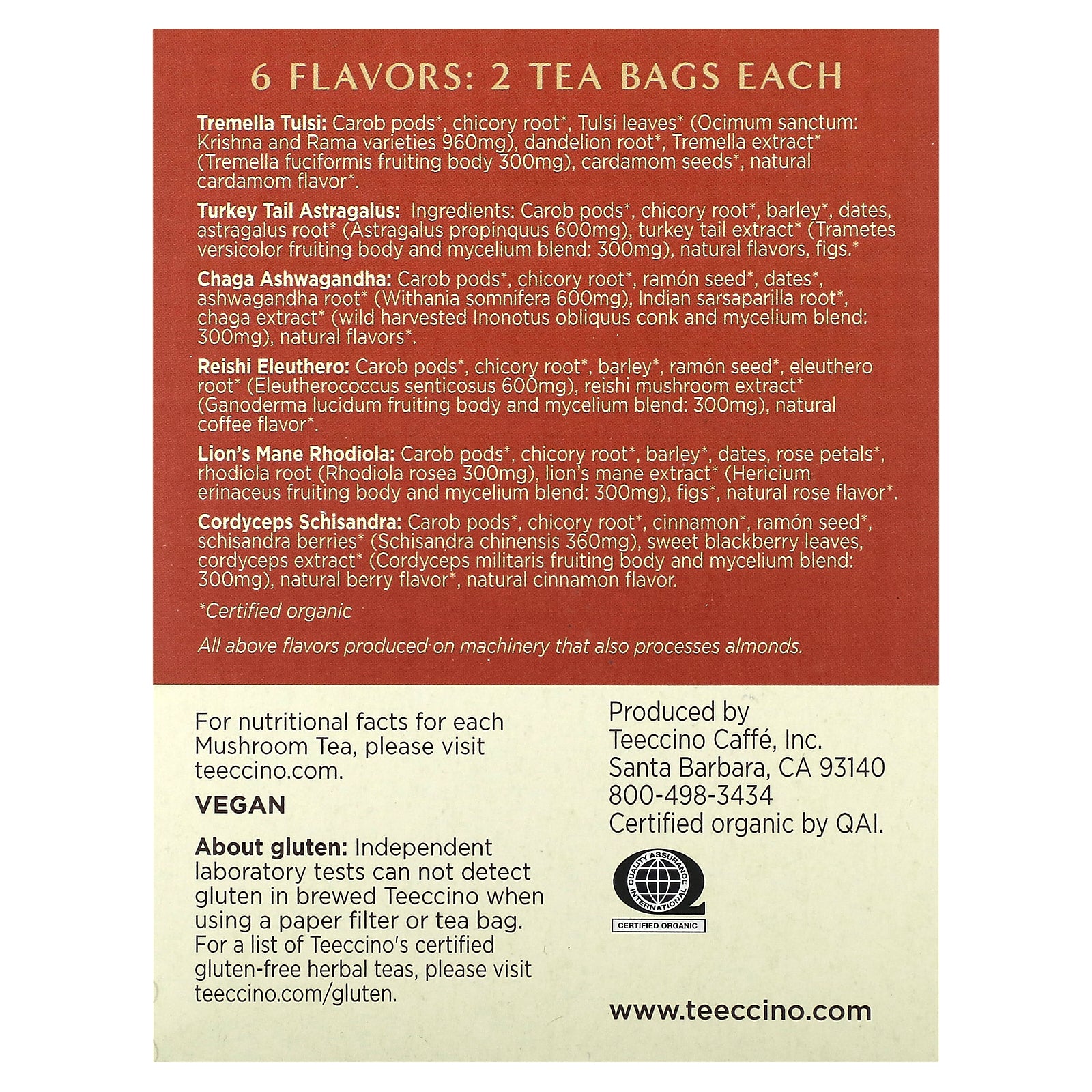 Teeccino's selection of adaptogenic mushrooms optimally paired with adaptogenic herbs are blended to enhance their combined wellness benefits. "Fruiting bodies" are what we think of as mushrooms while mycelium are like the roots and branches of mushrooms. The synergy these adaptogens create together bring delicious wellbeing to your cup.