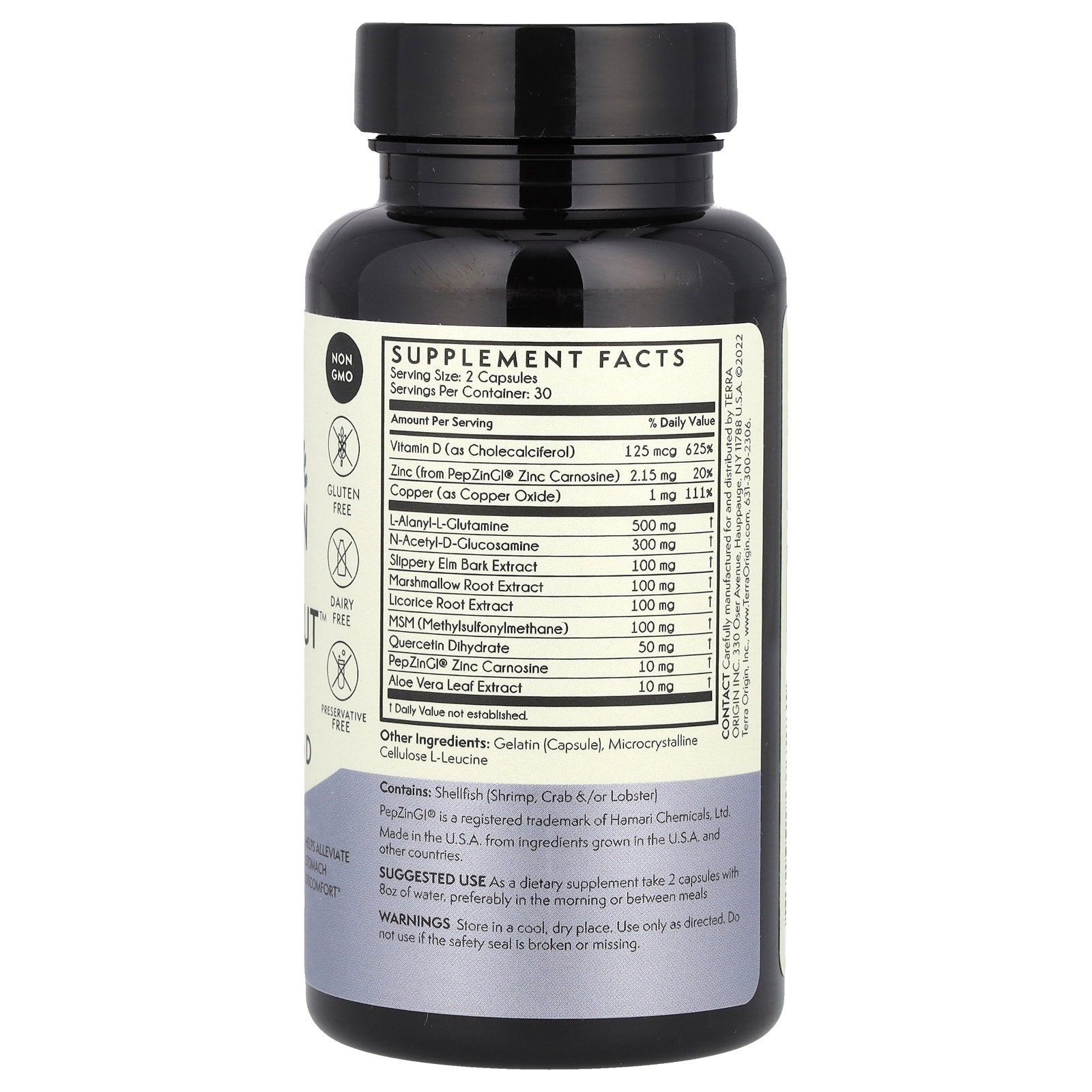 | Zinc (from PepZinGI® Zinc Carnosine) | 2.15 mg | 20% |