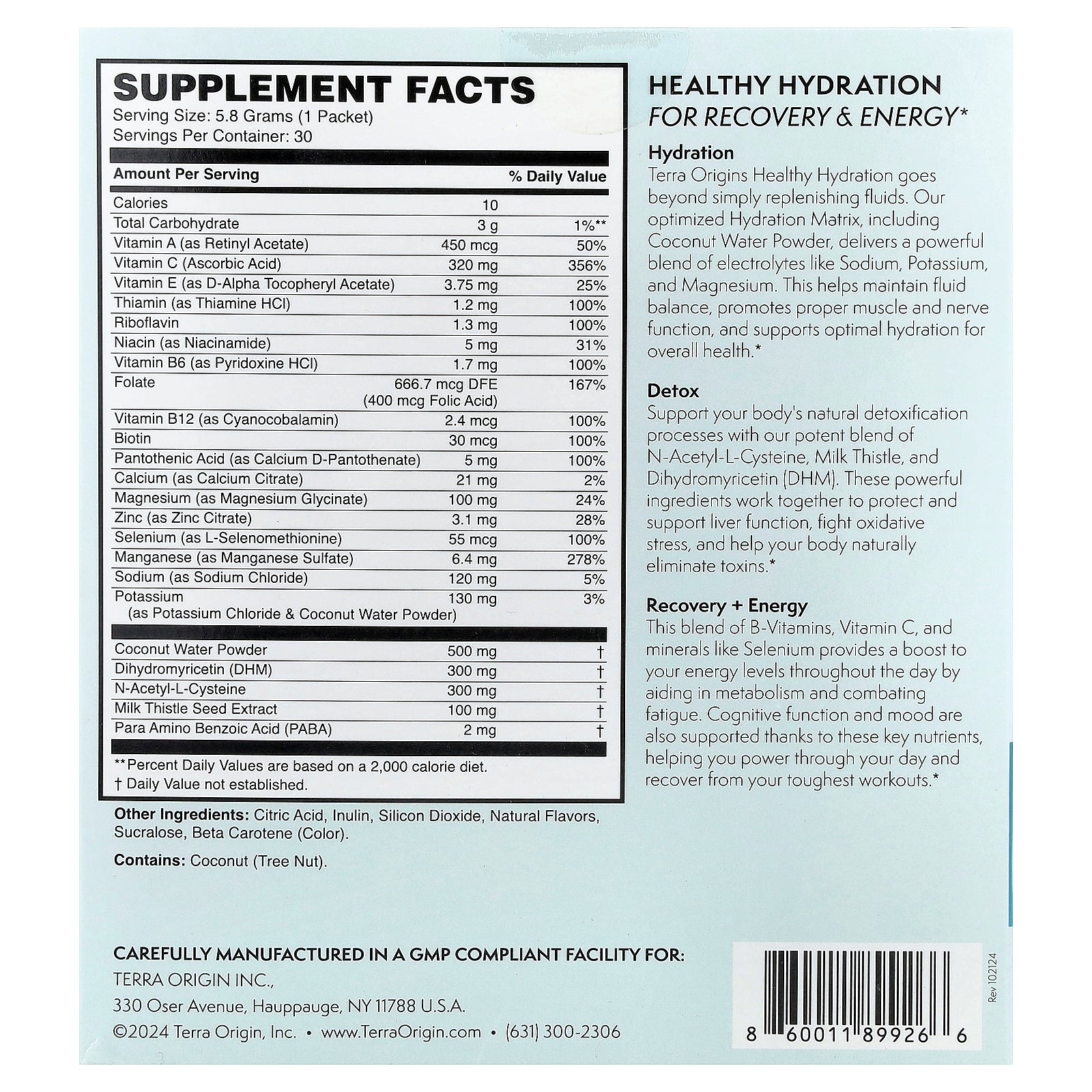 Terra Origins Healthy Hydration goes beyond simply replenishing fluids. Our optimized Hydration Matrix, including Coconut Water Powder, delivers a powerful blend of electrolytes like Sodium, Potassium, and Magnesium. This helps maintain fluid balance, promotes proper muscle and nerve function, and supports optimal hydration for overall health.